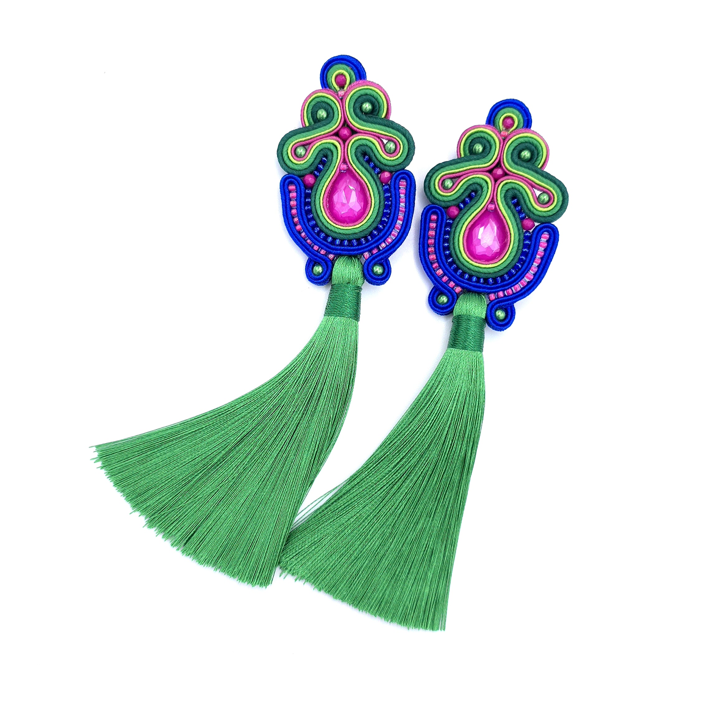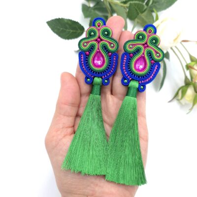 „Dalia” kolczyki sutasz z chwostami długie kolorowe barwne wiosenne