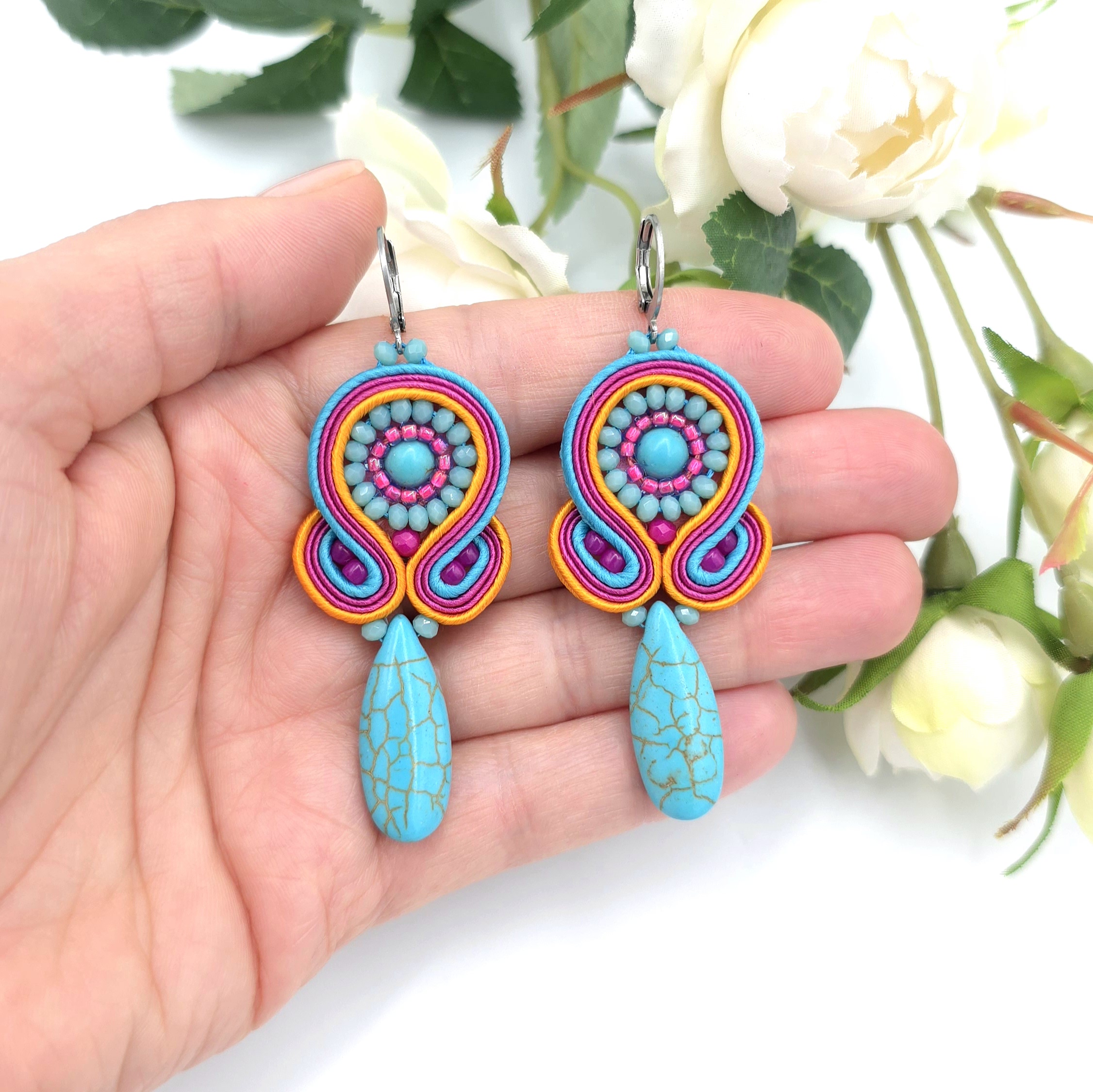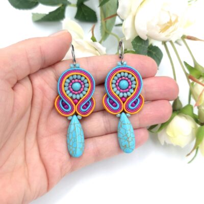 Napisz pierwszą opinię o „„Etno” kolczyki sutasz kolorowe lekkie z howlitami”