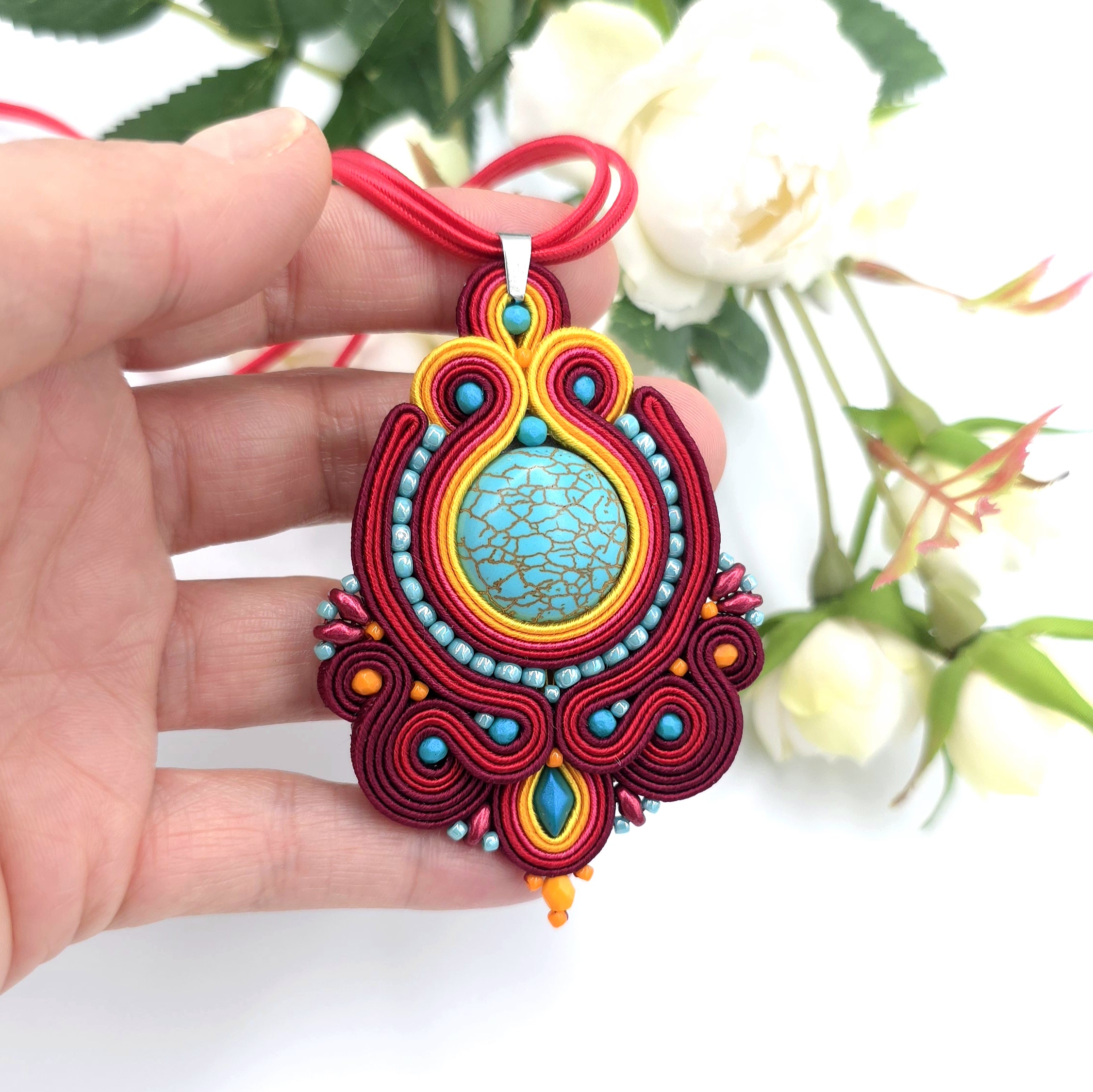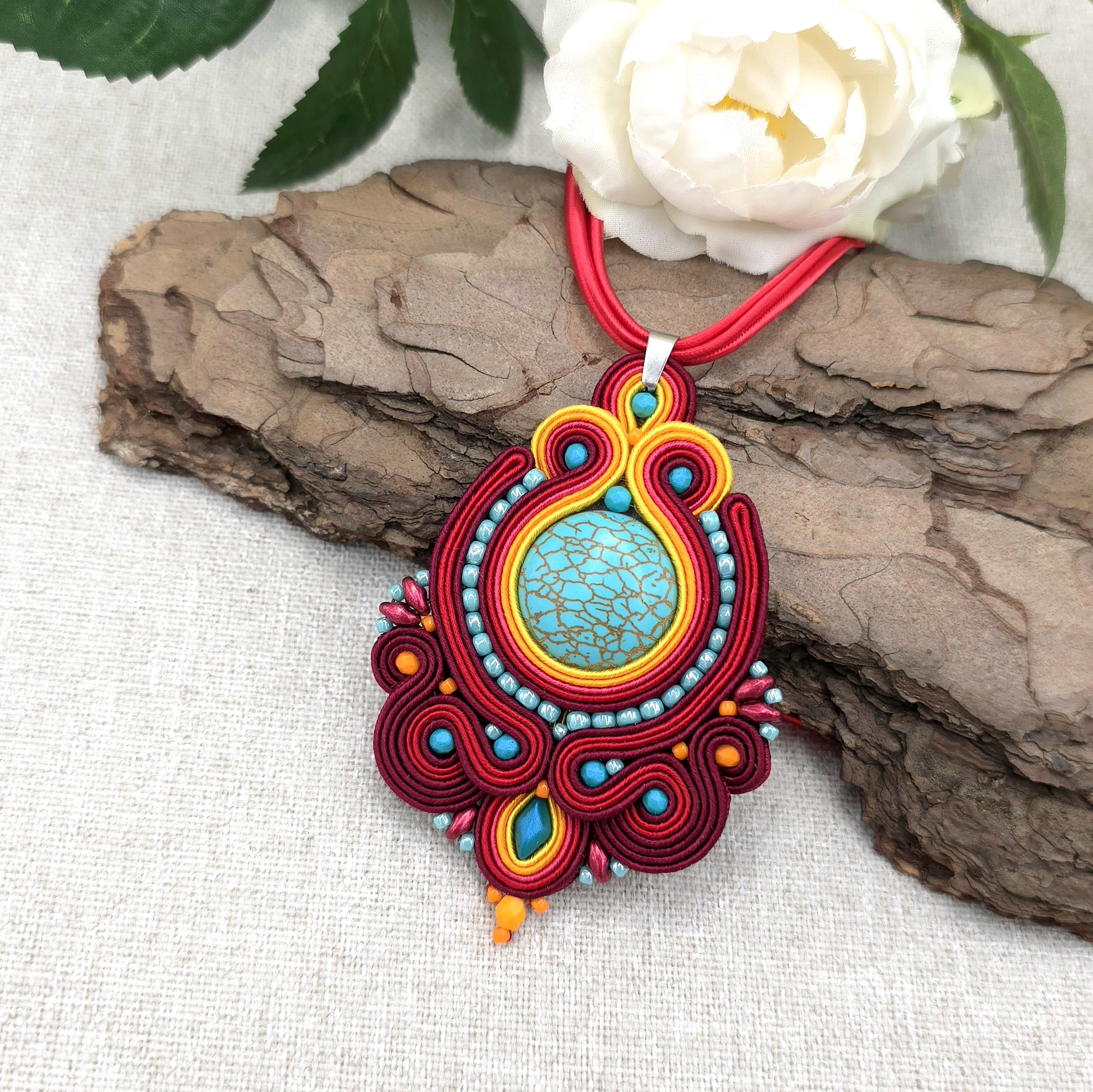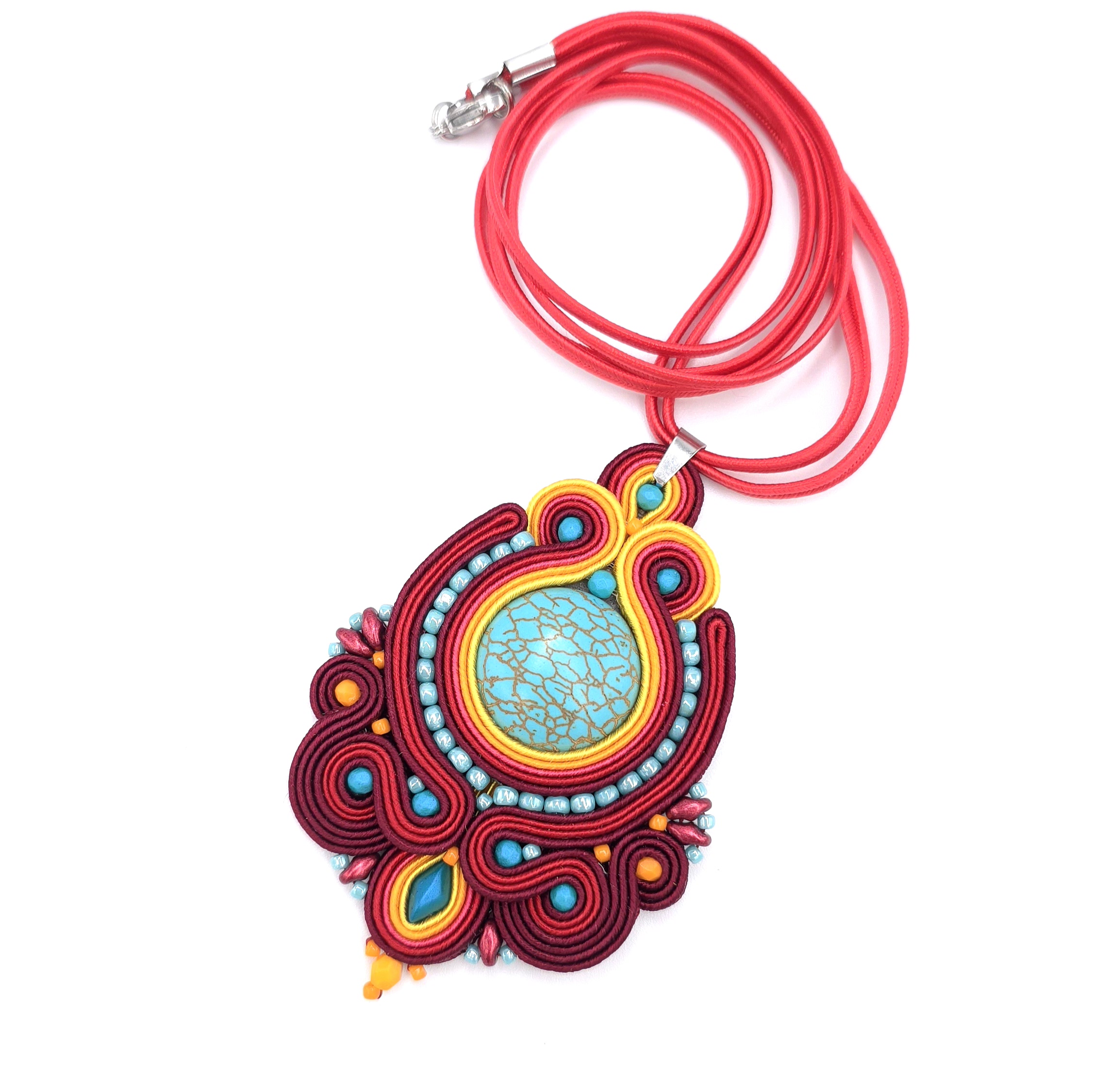 Prawdziwie ognisty wisiorek, z pięknym turkusowym howlitem pośrodku.