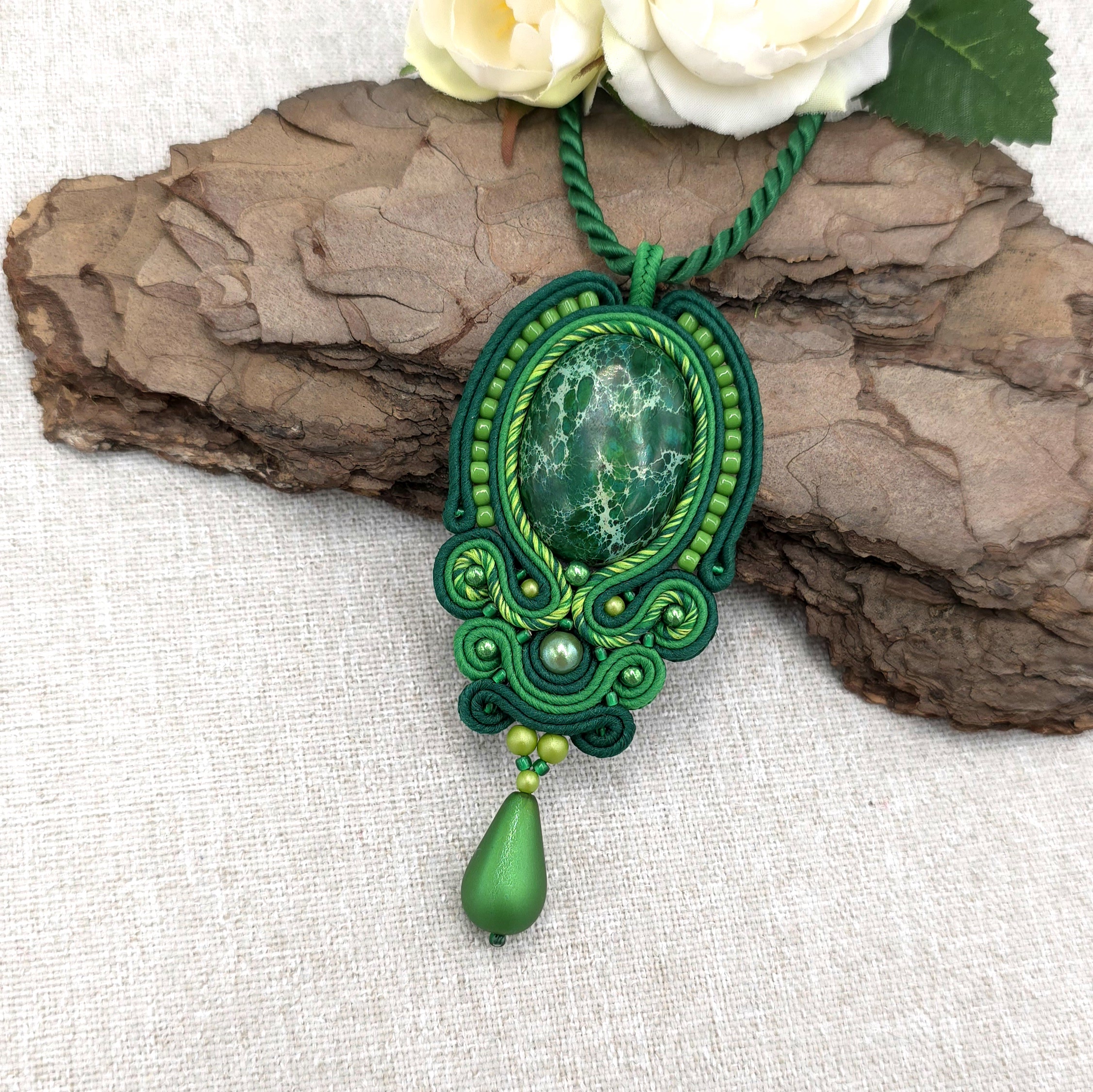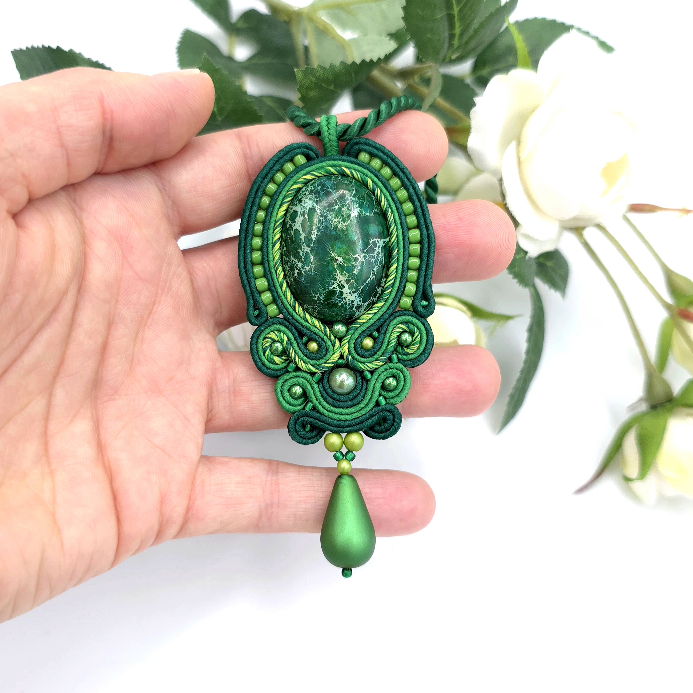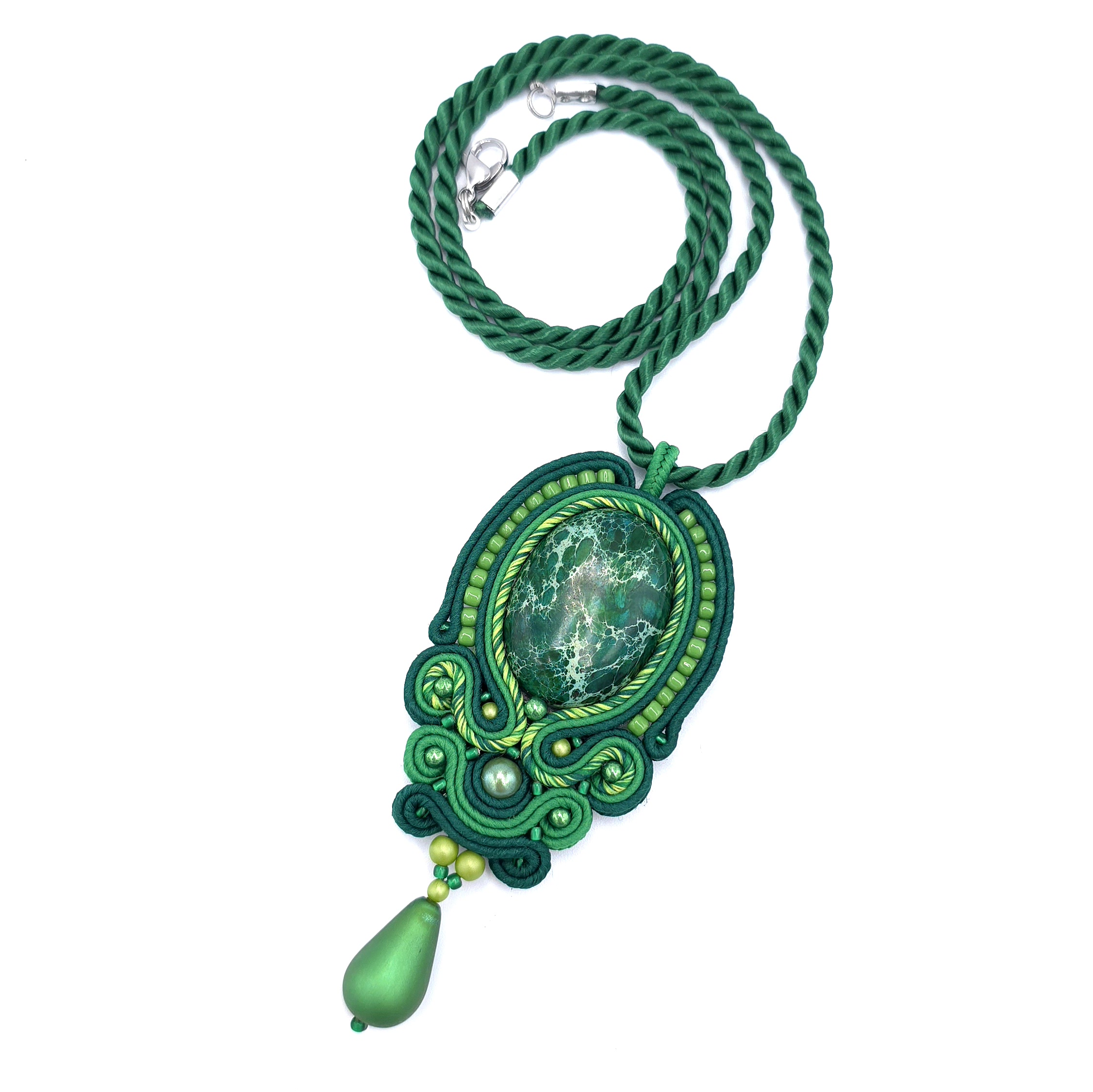 Unikatowy wisiorek stanowiący połączenie różnych odcieni zieleni.