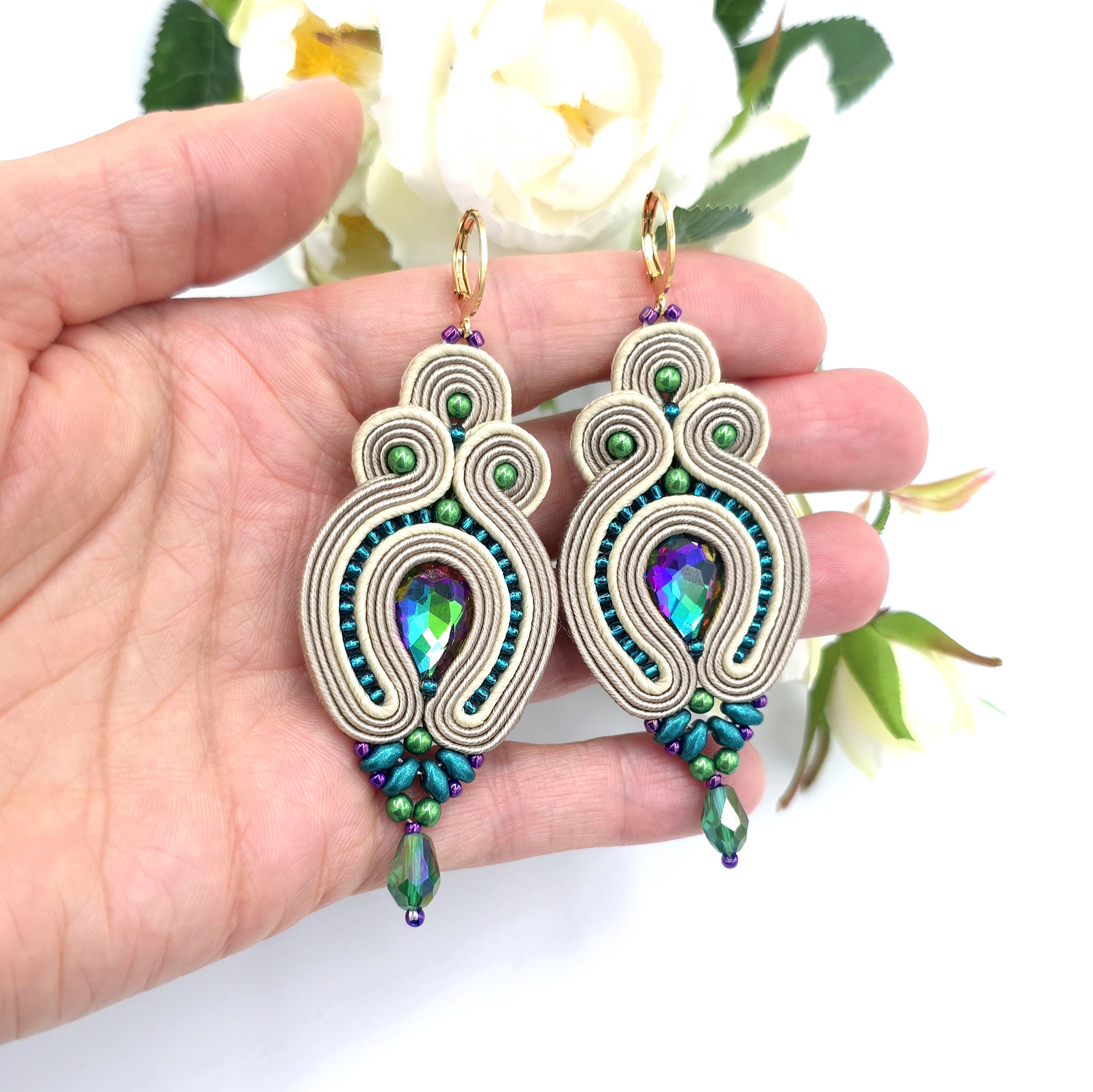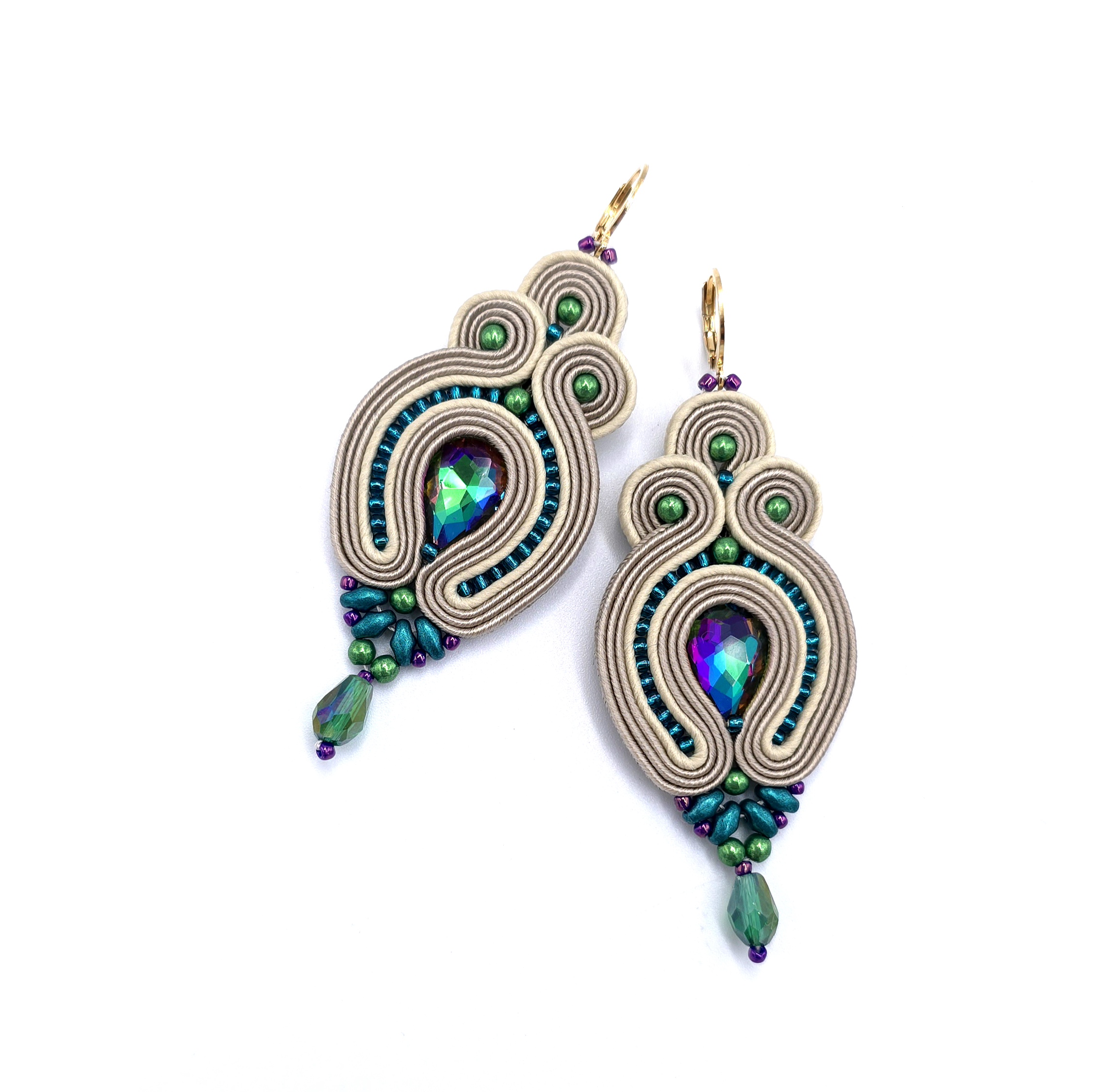 Kolczyki sutasz beżowe „Verra” multikolor wieczorowe z kryształkami