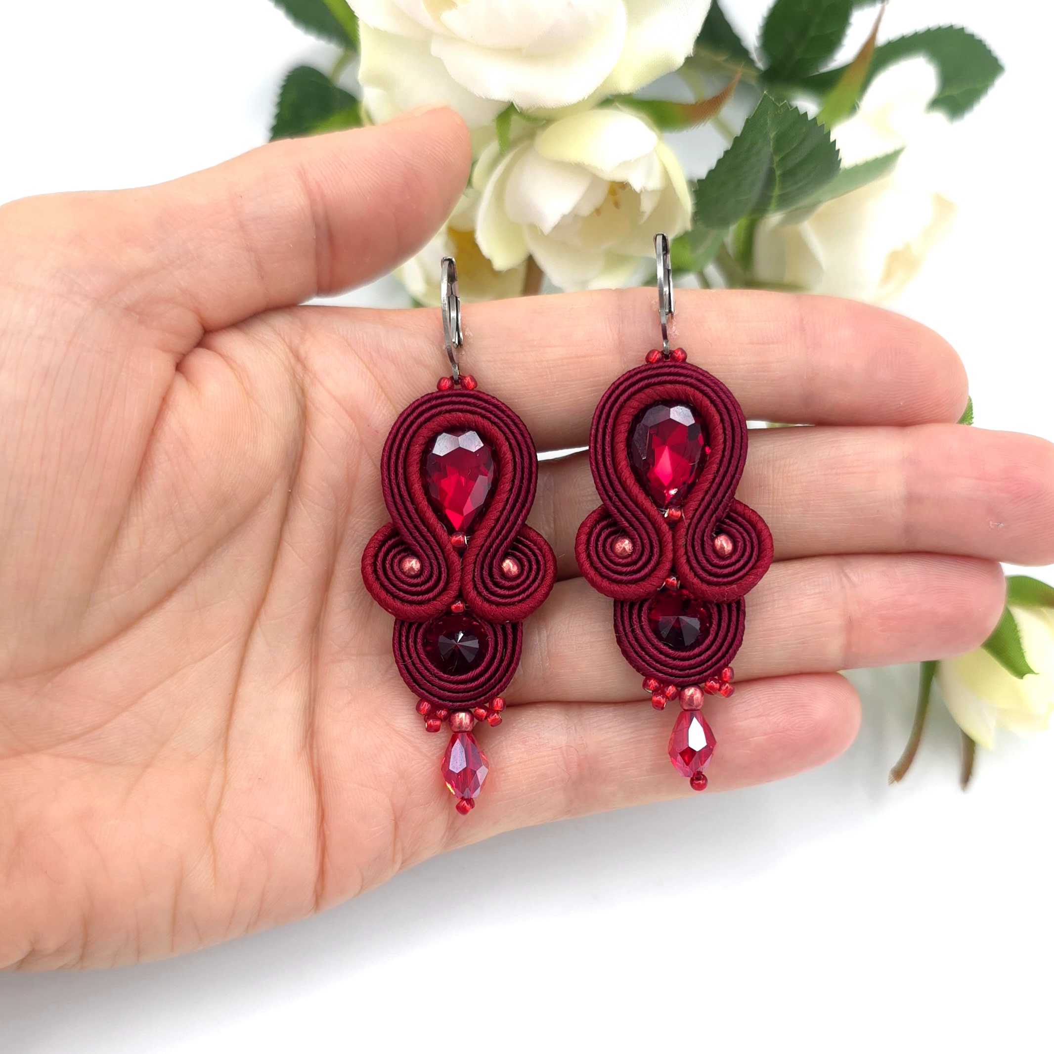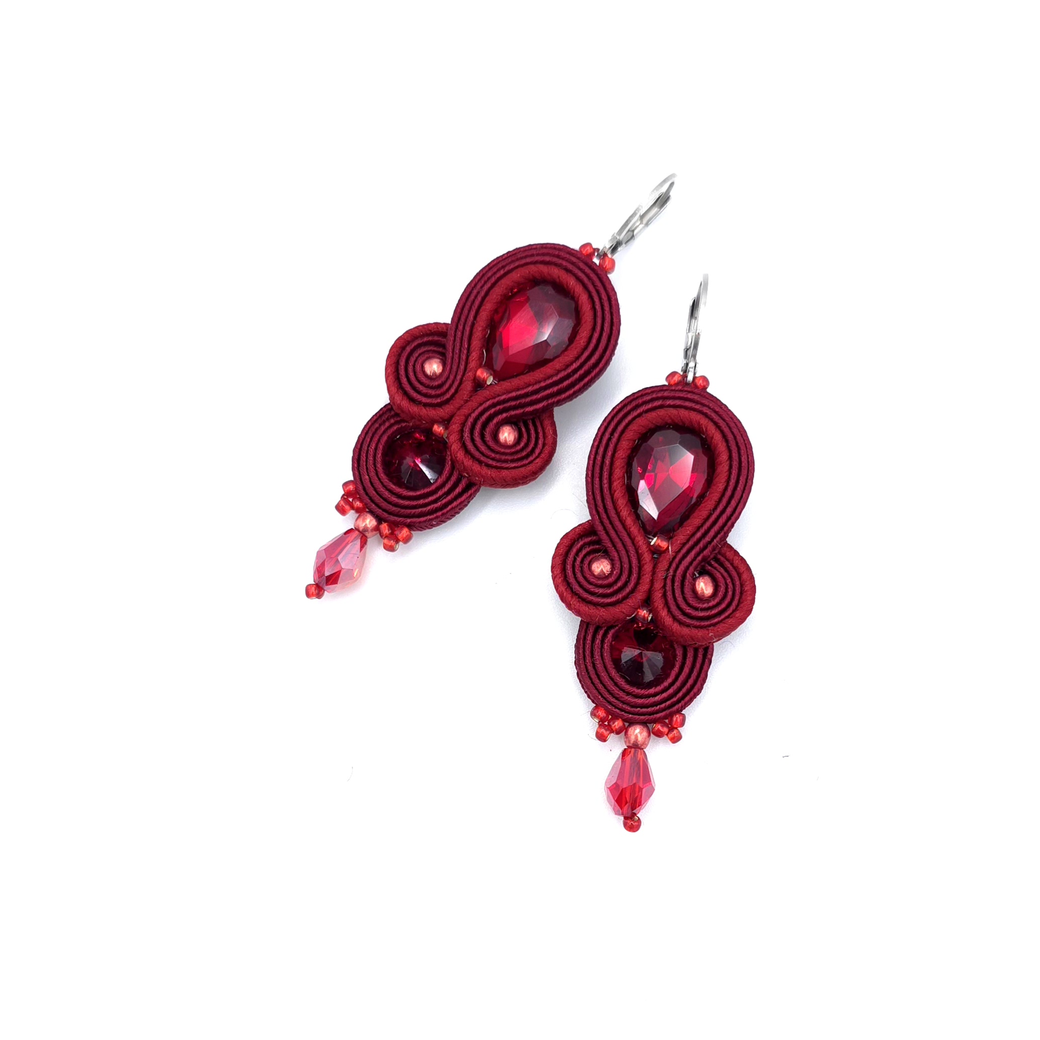 Kolczyki sutasz z kryształkami, w niewielkim rozmiarze, zakończone łezką i koralikami.