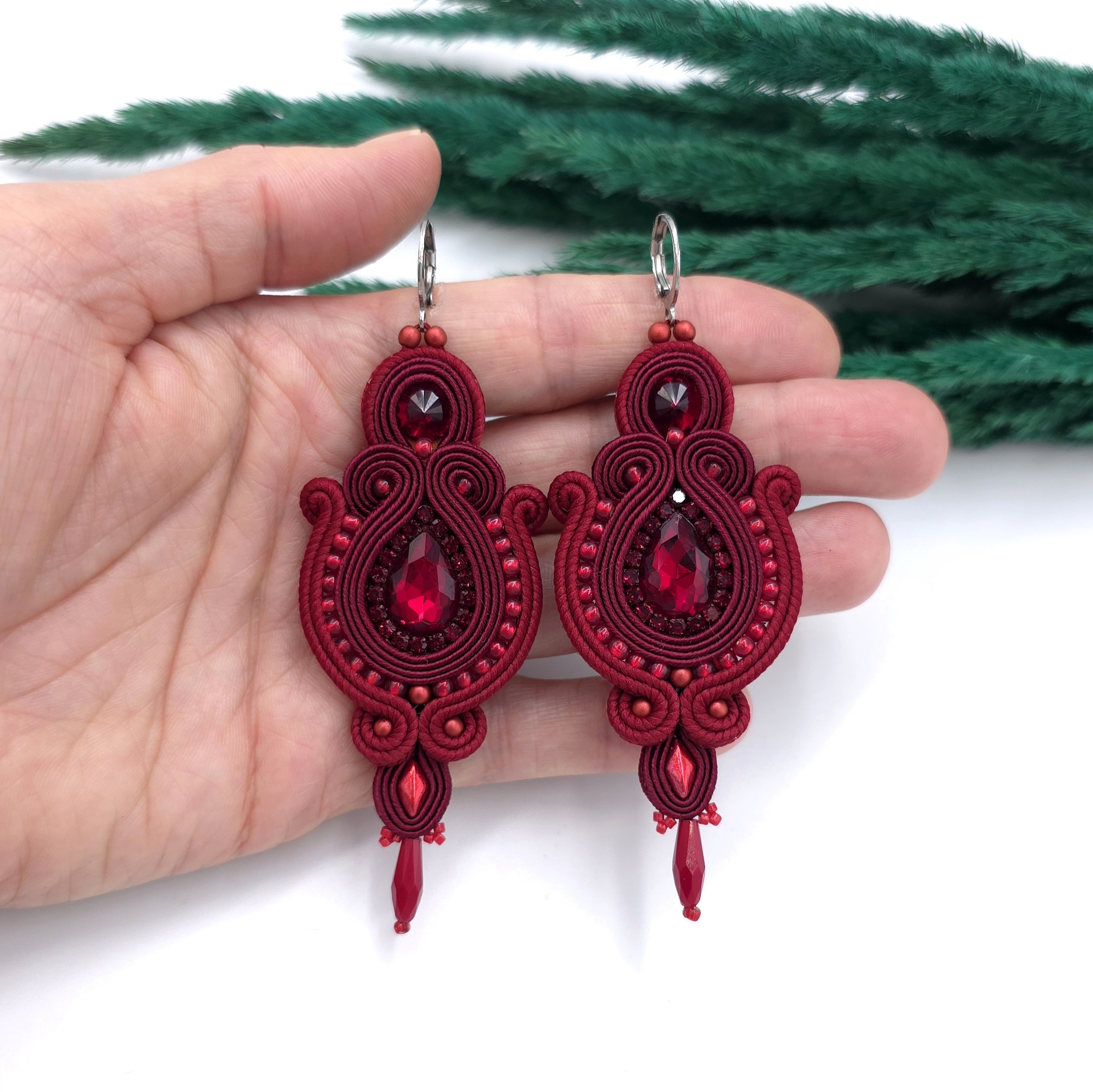 kaboszony kryształki, taśma z cyrkoniami, koraliki Toho, koraliki Round Beads, koraliki GemDuo, szklane łezki, czeskie i polskie sznurki sutasz, bigle ze stali chirurgicznej.