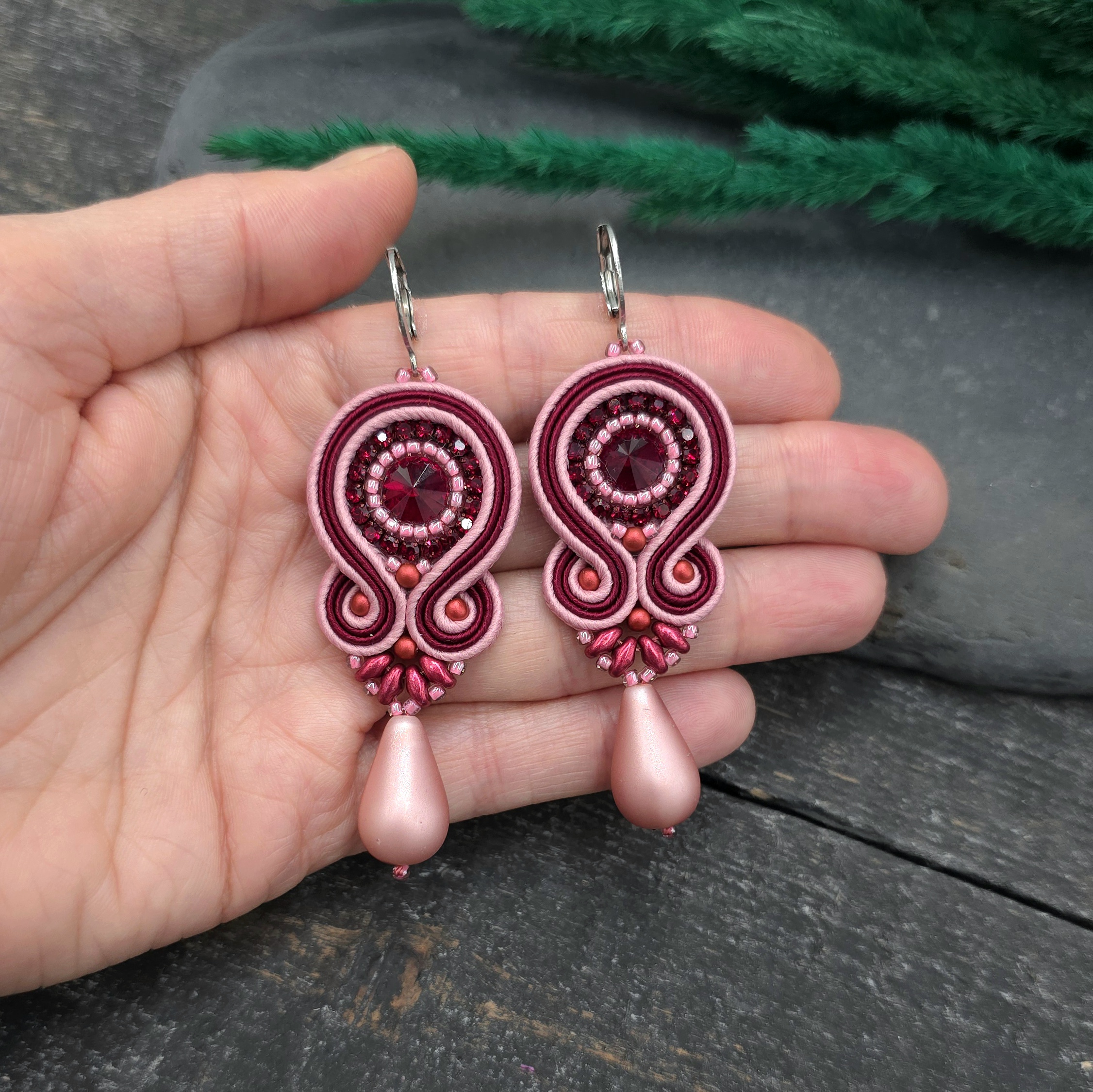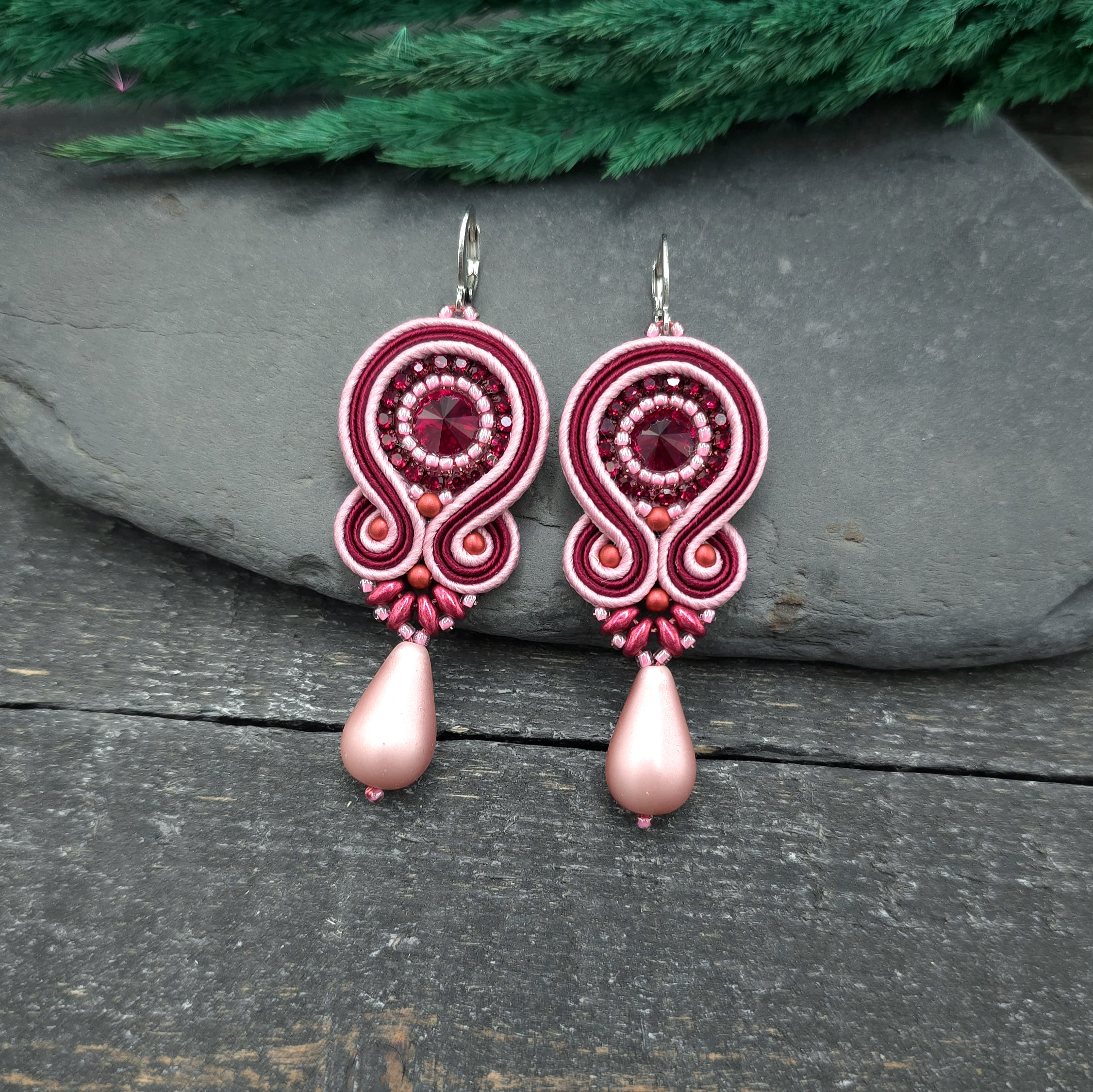 kaboszony kryształki, taśma z cyrkoniami, koraliki Toho, koraliki Round Beads, koraliki SuperDuo, duże szklane łezki DropBeads, greckie i czeskie sznurki sutasz, bigle ze stali chirurgicznej.