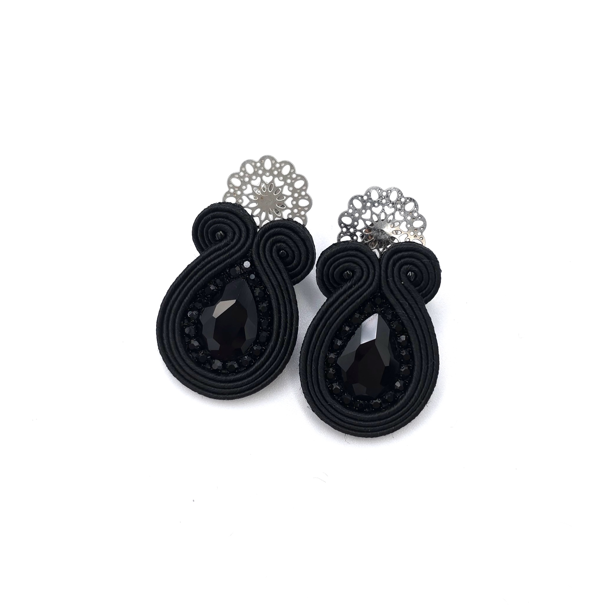 kaboszony kryształki, taśma z cyrkoniami, koraliki Toho, czeskie sznurki sutasz, sztyfty kwiatki ze stali chirurgicznej.