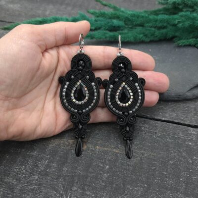 Ozdobione taśmą z cyrkoniami oraz drobnymi koralikami, tworzą efektowny i elegancki dodatek.