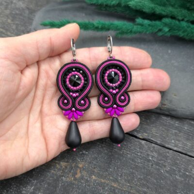 kaboszony kryształki, taśma z cyrkoniami, koraliki Toho, koraliki Fire Polish, koraliki SuperDuo, duże szklane łezki DropBeads, greckie i czeskie sznurki sutasz, bigle ze stali chirurgicznej.