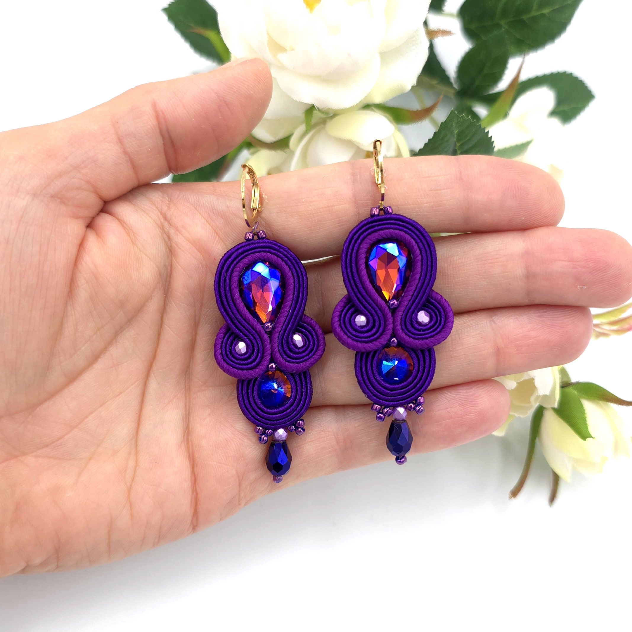 kaboszony kryształki, koraliki Toho, koraliki Round Beads, szklane łezki, czeskie sznurki sutasz, bigle ze stali chirurgicznej.