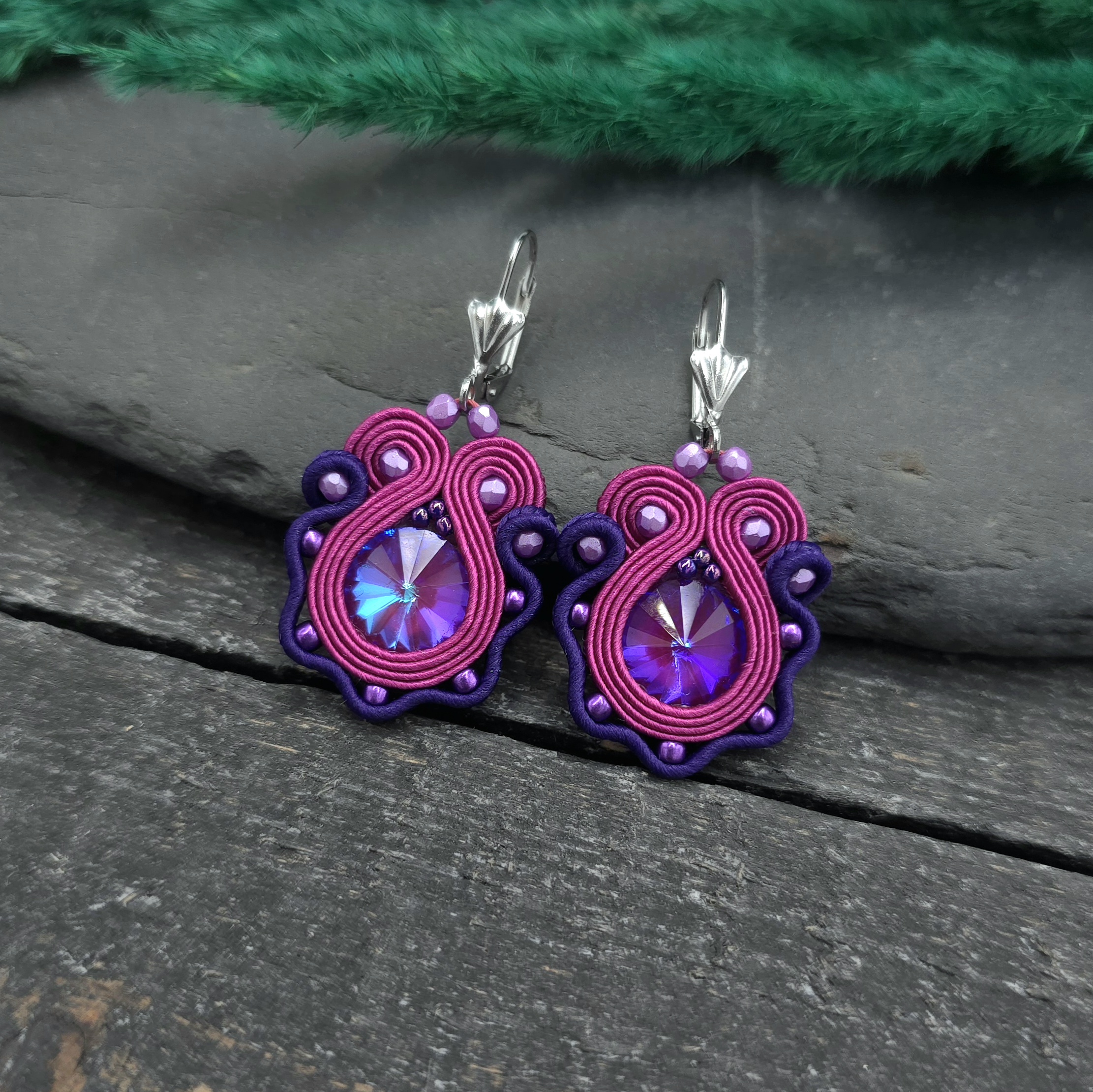 kaboszony kryształki, koraliki Fire Polish, koraliki Toho, czeskie i greckie sznurki sutasz, bigle ze stali chirurgicznej.
