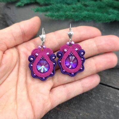 Delikatne kolczyki sutaszowe w formie kwiatów, które przyciągają spojrzenia swoją kolorową, radosną kompozycją.