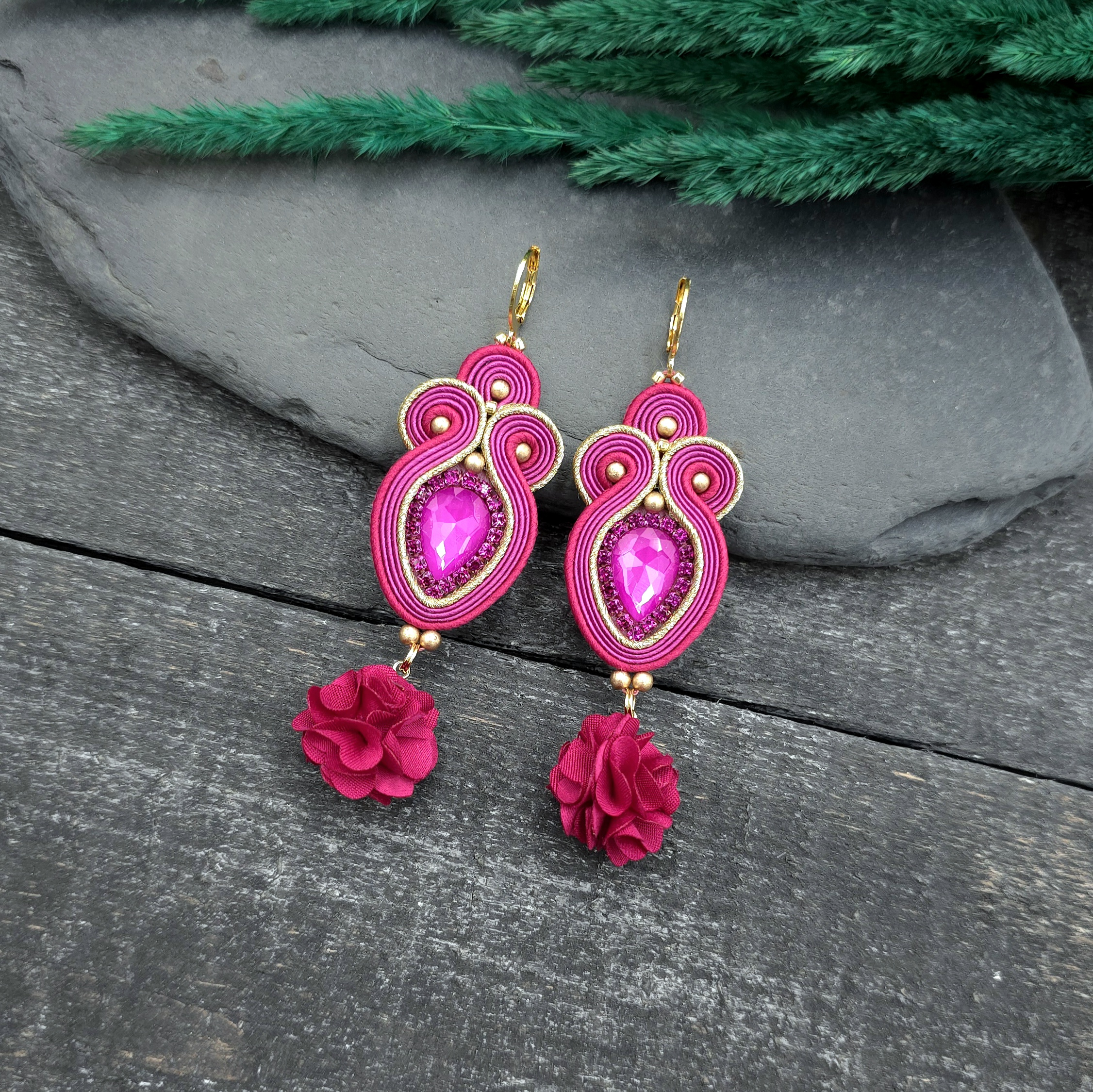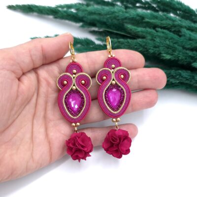 kaboszony kryształki, koraliki Toho, koraliki Round Beads, materiałowe kwiatki, czeskie i greckie sznurki sutasz, bigle ze stali chirurgicznej.