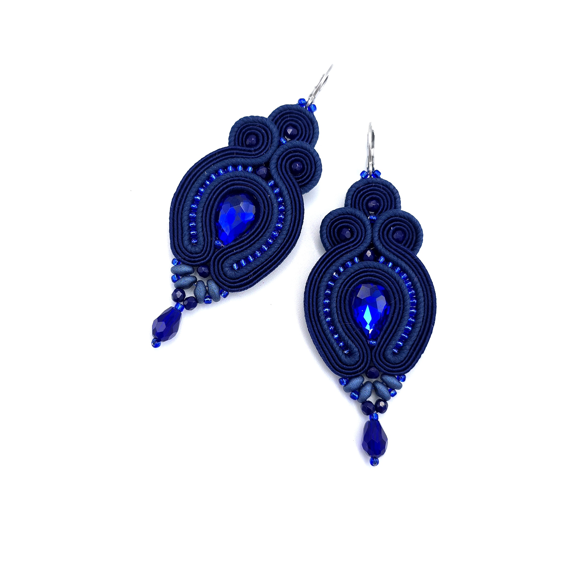 Wieczorowe, zwężające się ku dołowi, wypełnione mnóstwem drobnych koralików i błyszczącym kryształkiem pośrodku.