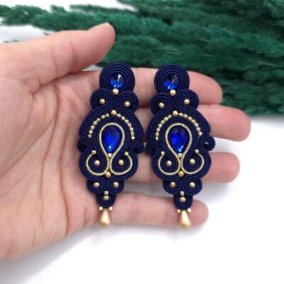 Kolczyki sutasz w odcieniu głębokiego granatu urzekają elegancją i misternie ułożonymi sznureczkami.