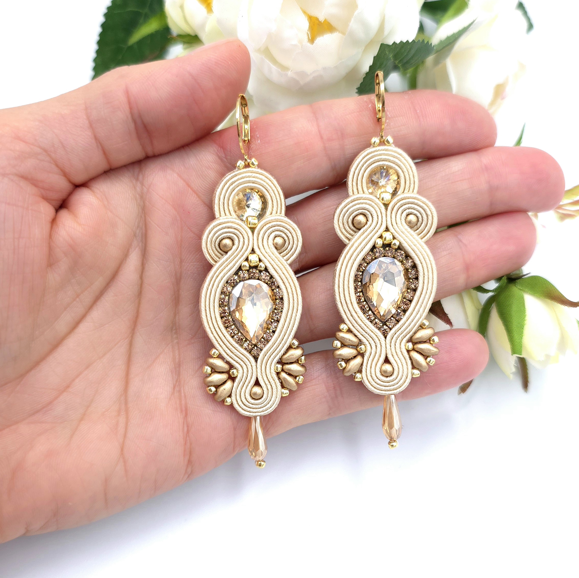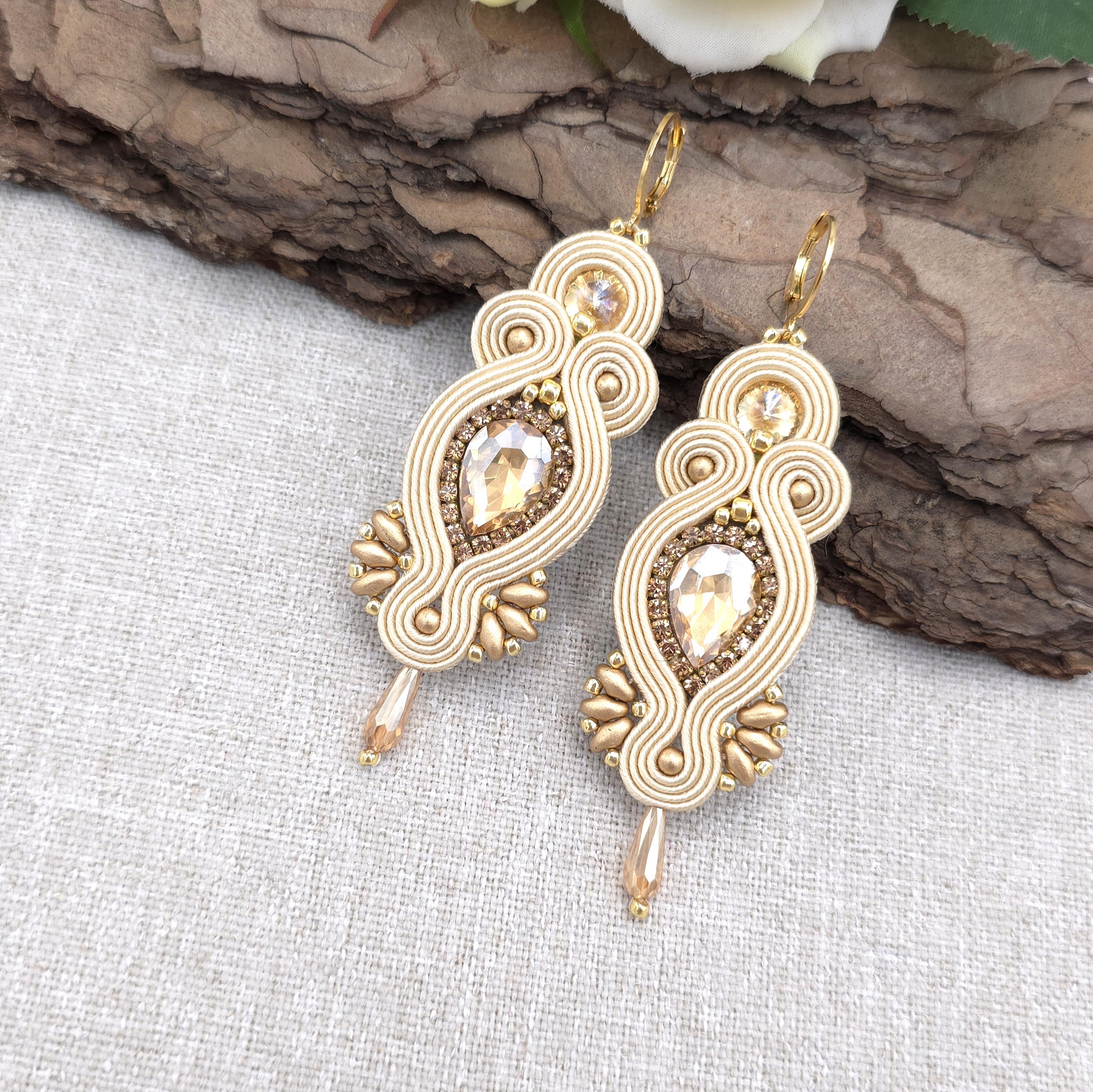 kaboszony kryształki, taśma z cyrkoniami, koraliki Toho, koraliki Round Beads, koraliki SuperDuo, szklane łezki, czeskie sznurki sutasz, bigle ze stali chirurgicznej.