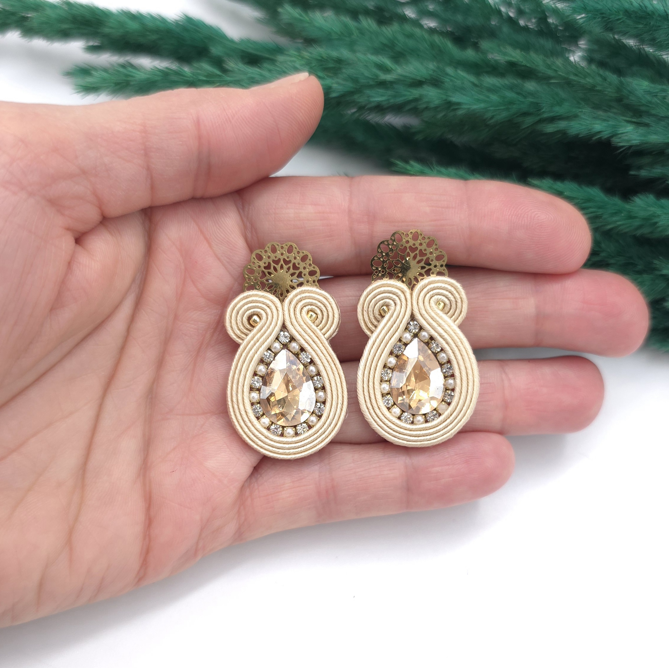 Kolczyki sutasz kremowe sztyfty małe codzienne „Ella” z kryształkami