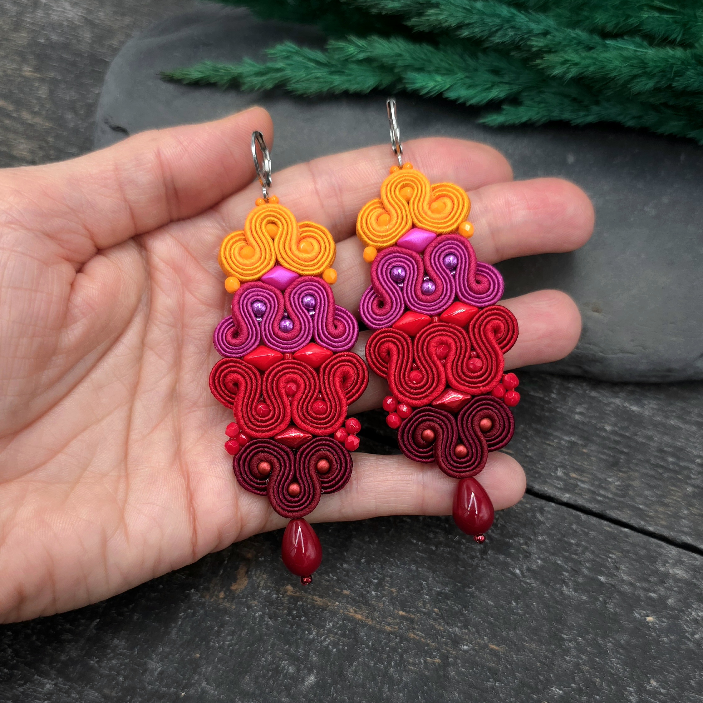 To unikatowe kolczyki sutasz dla kobiet, które kochają odważne kolory, oryginalny design i rękodzieło na najwyższym poziomie.