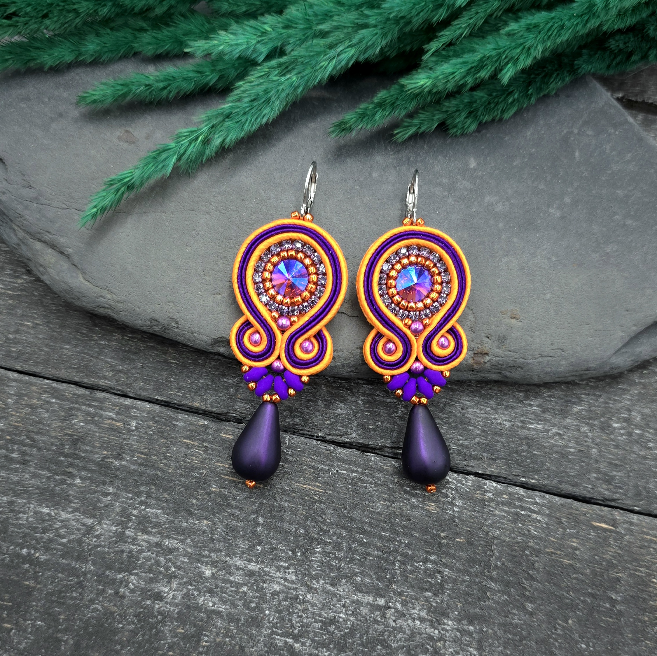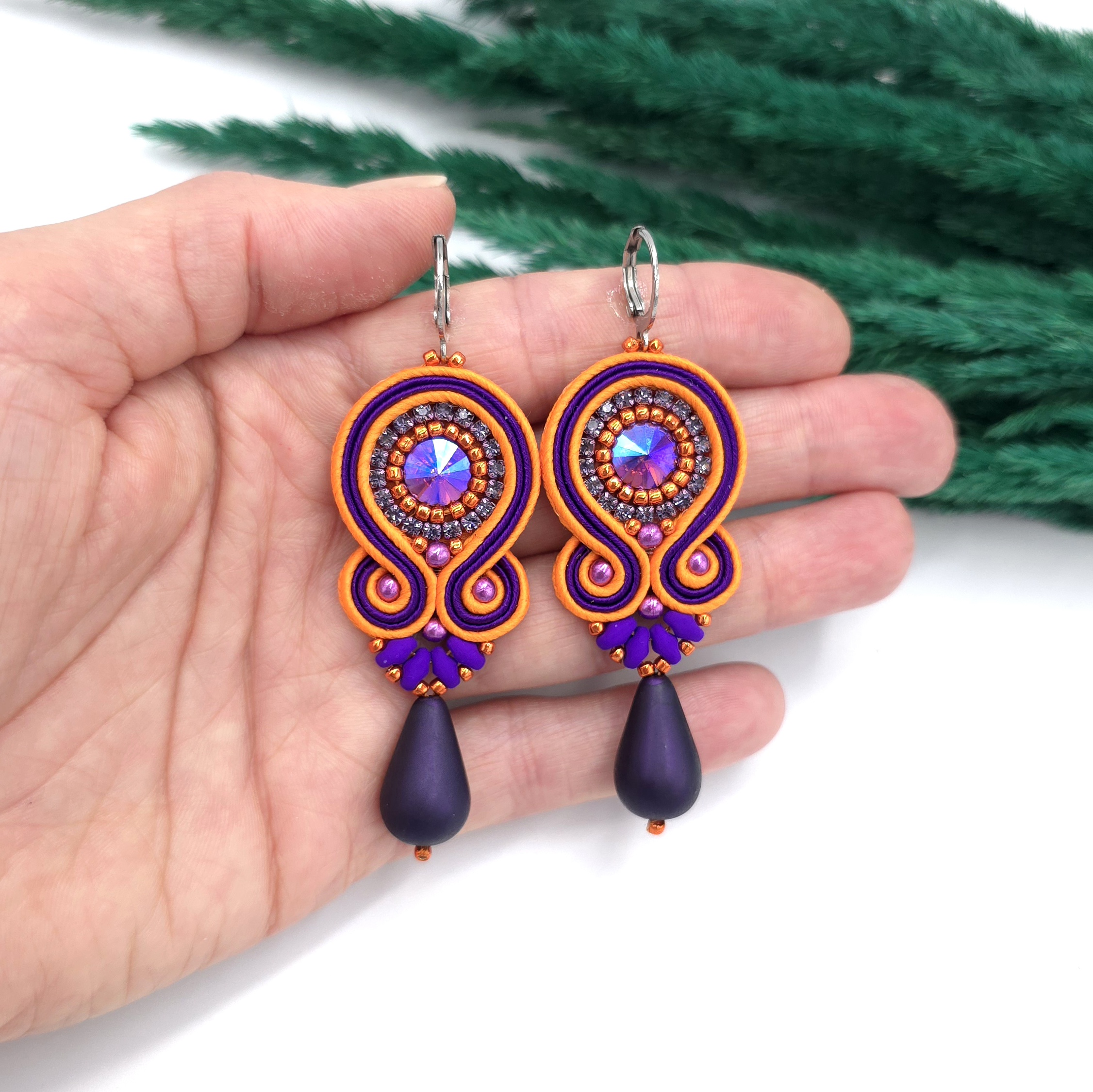 kaboszony kryształki, taśma z cyrkoniami, koraliki Toho, koraliki Round Beads, koraliki SuperDuo, duże szklane łezki DropBeads, greckie i czeskie sznurki sutasz, bigle ze stali chirurgicznej.