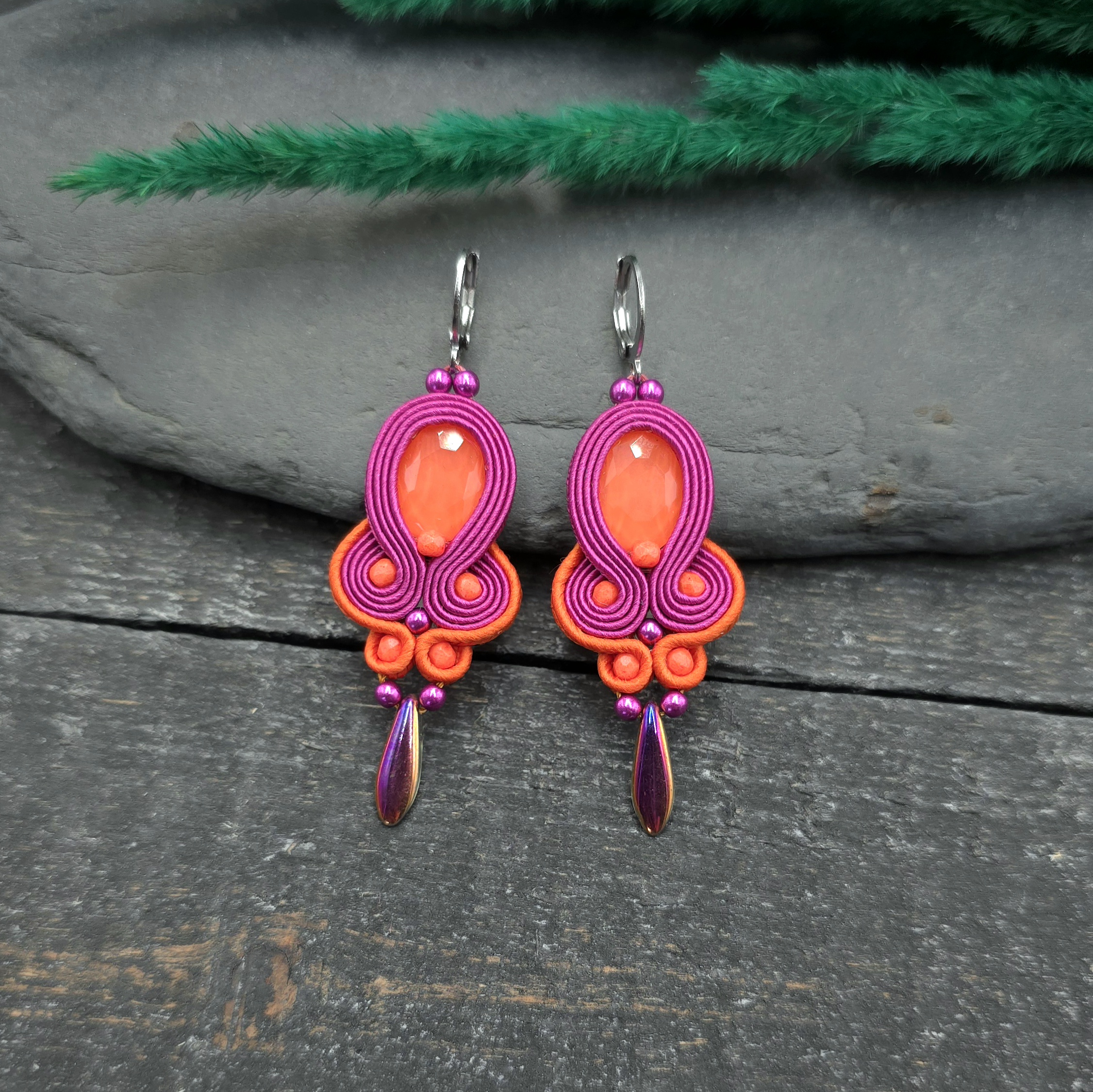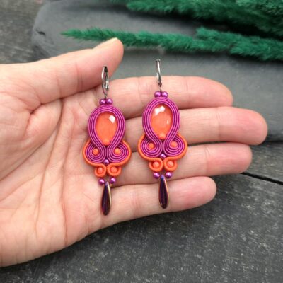 Kolczyki sutasz pomarańczowo różowe wiosenne kolorowe lekkie „Elisa”