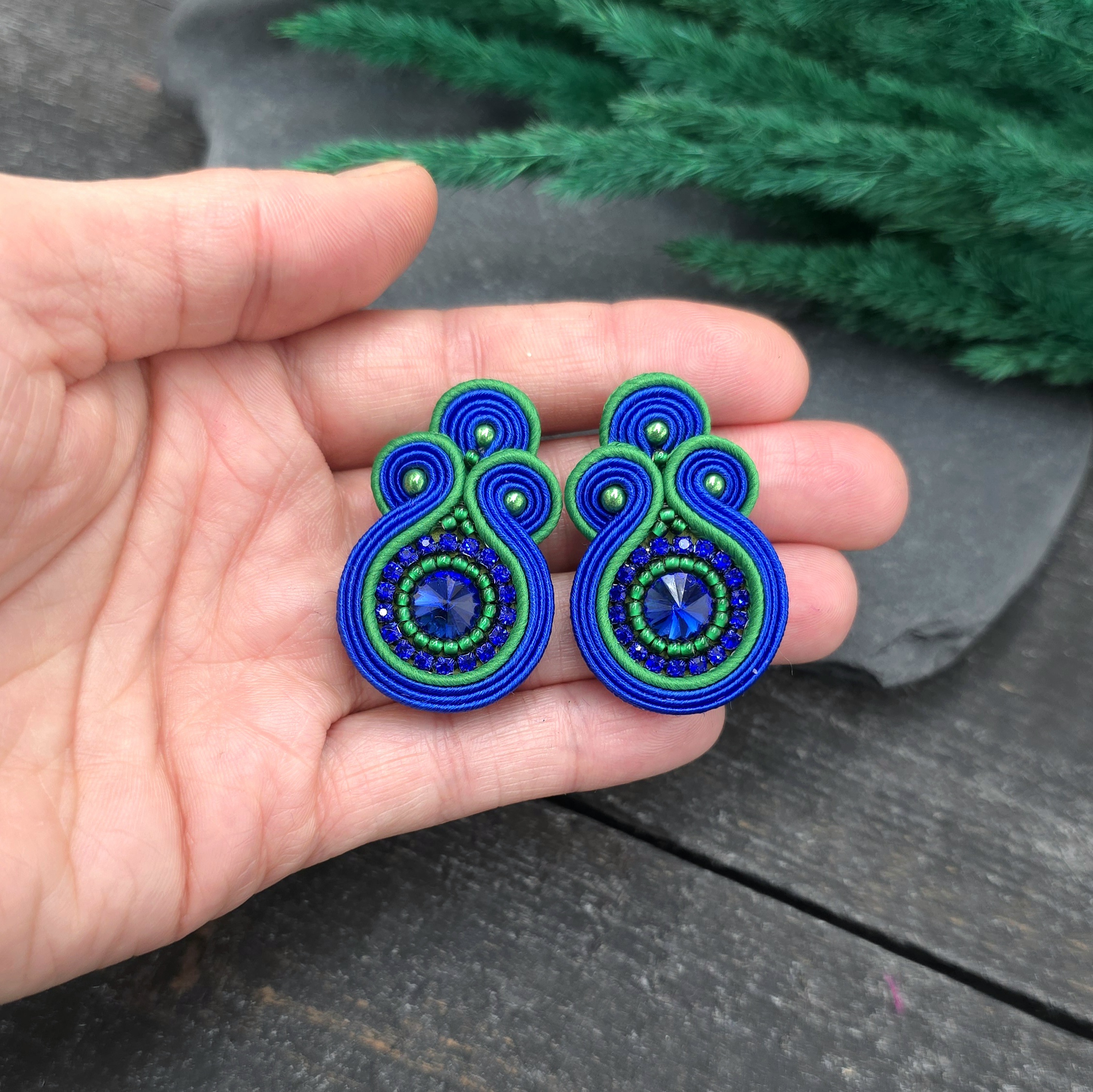 kaboszony kryształki, taśma z cyrkoniami, koraliki Toho, koraliki Round Beads, czeskie i greckie sznurki sutasz, sztyfty ze stali chirurgicznej.