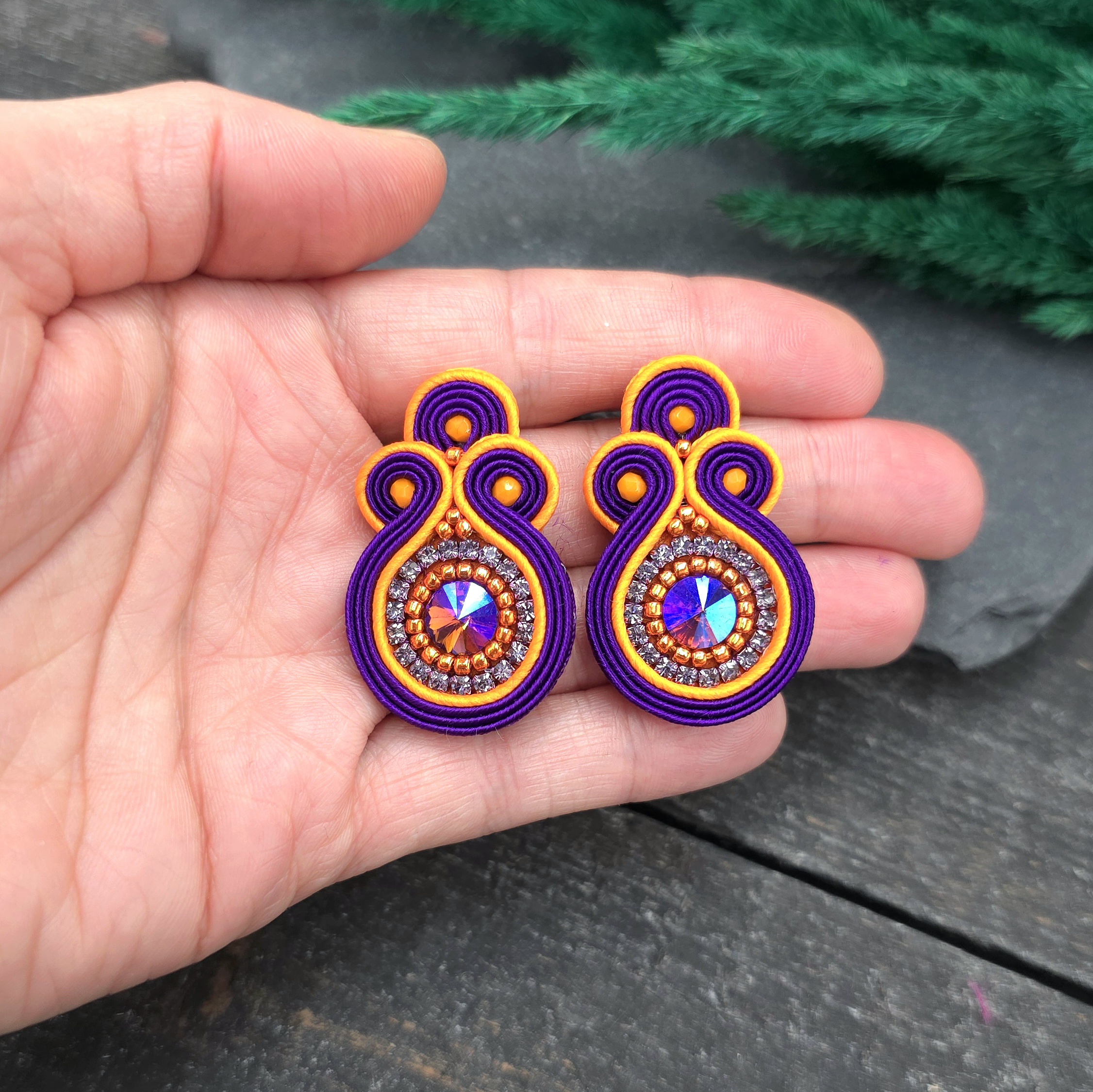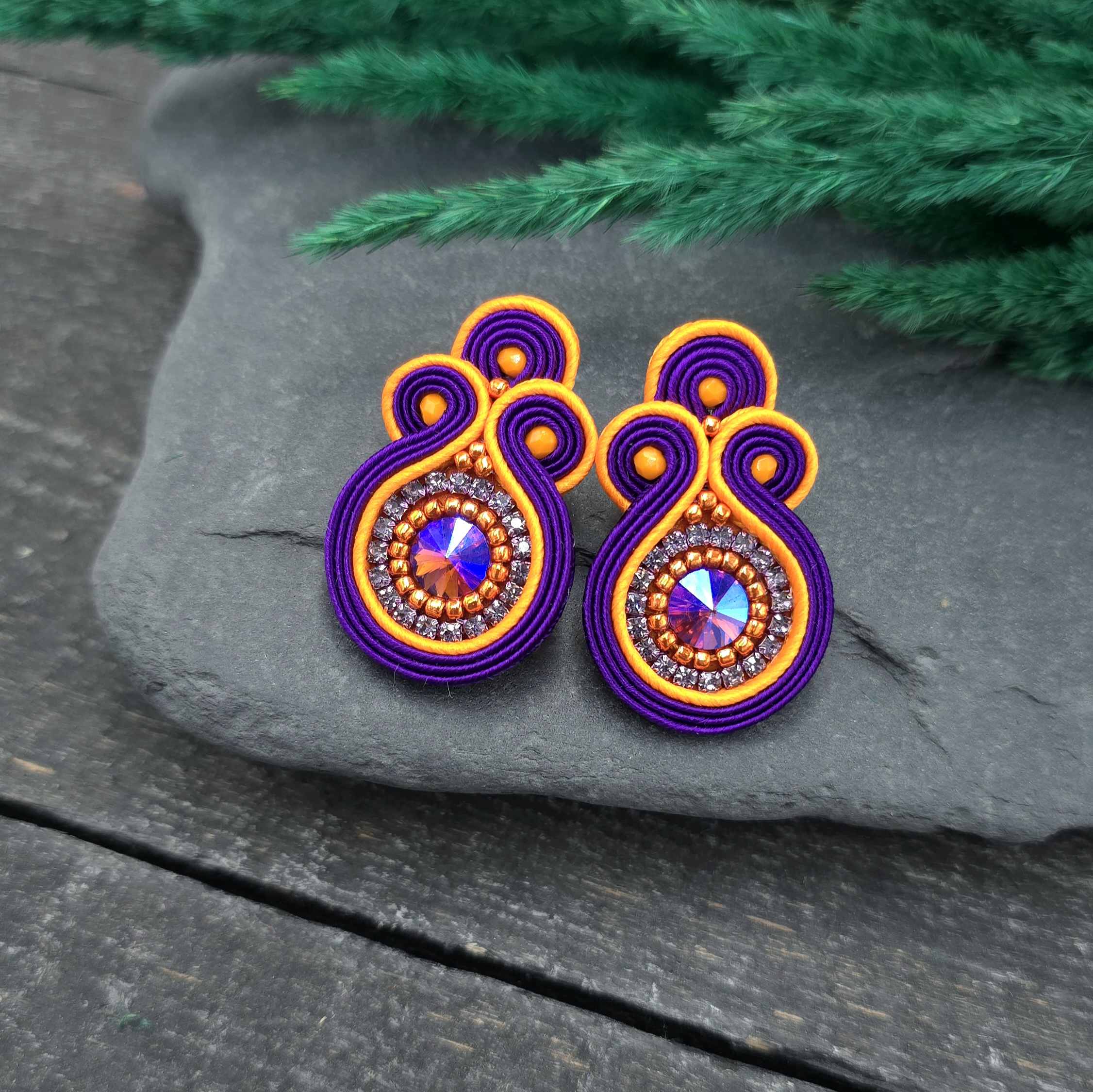 kaboszony kryształki, taśma z cyrkoniami, koraliki Toho, koraliki Fire Polish, czeskie i greckie sznurki sutasz, sztyfty ze stali chirurgicznej.