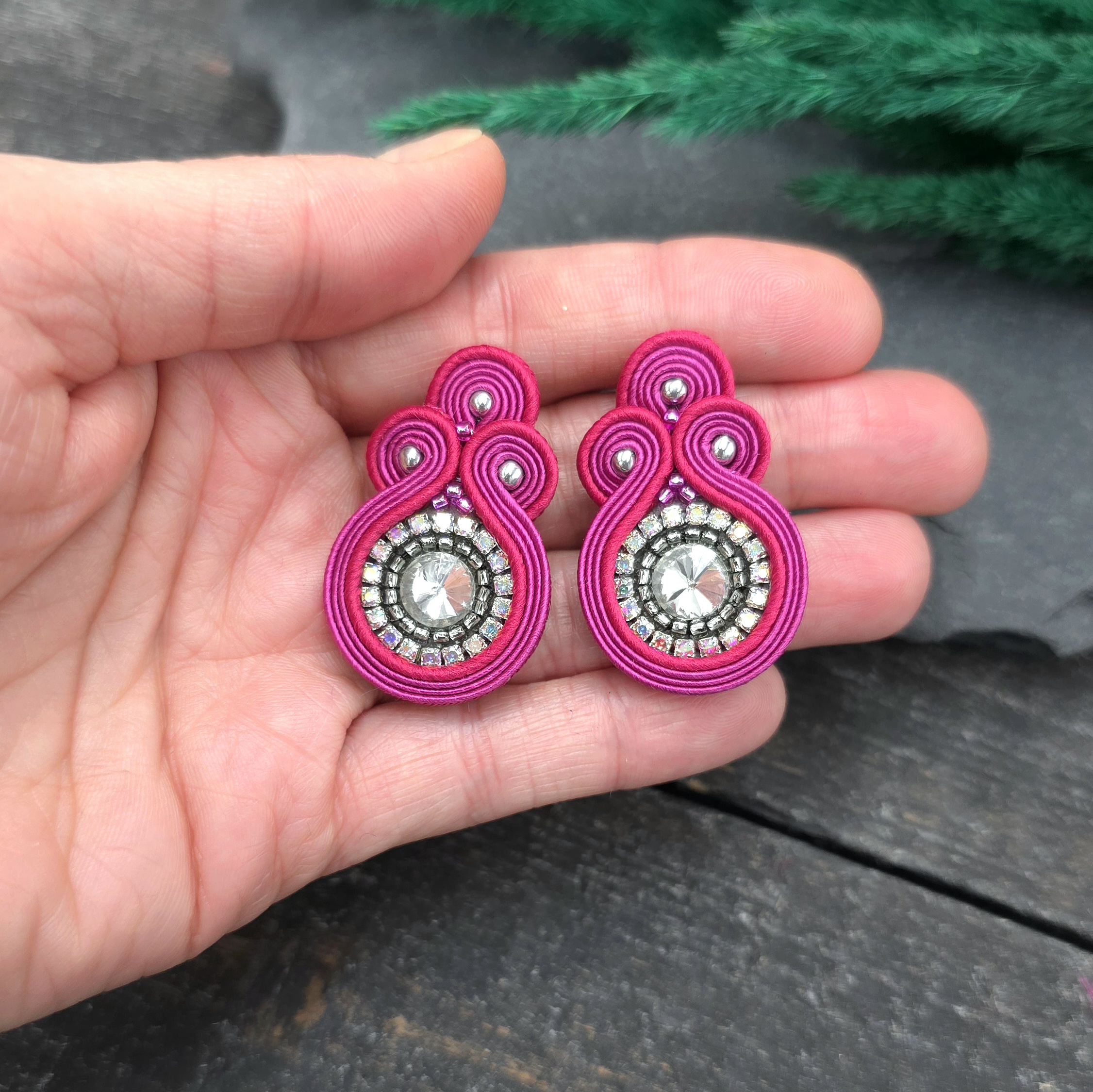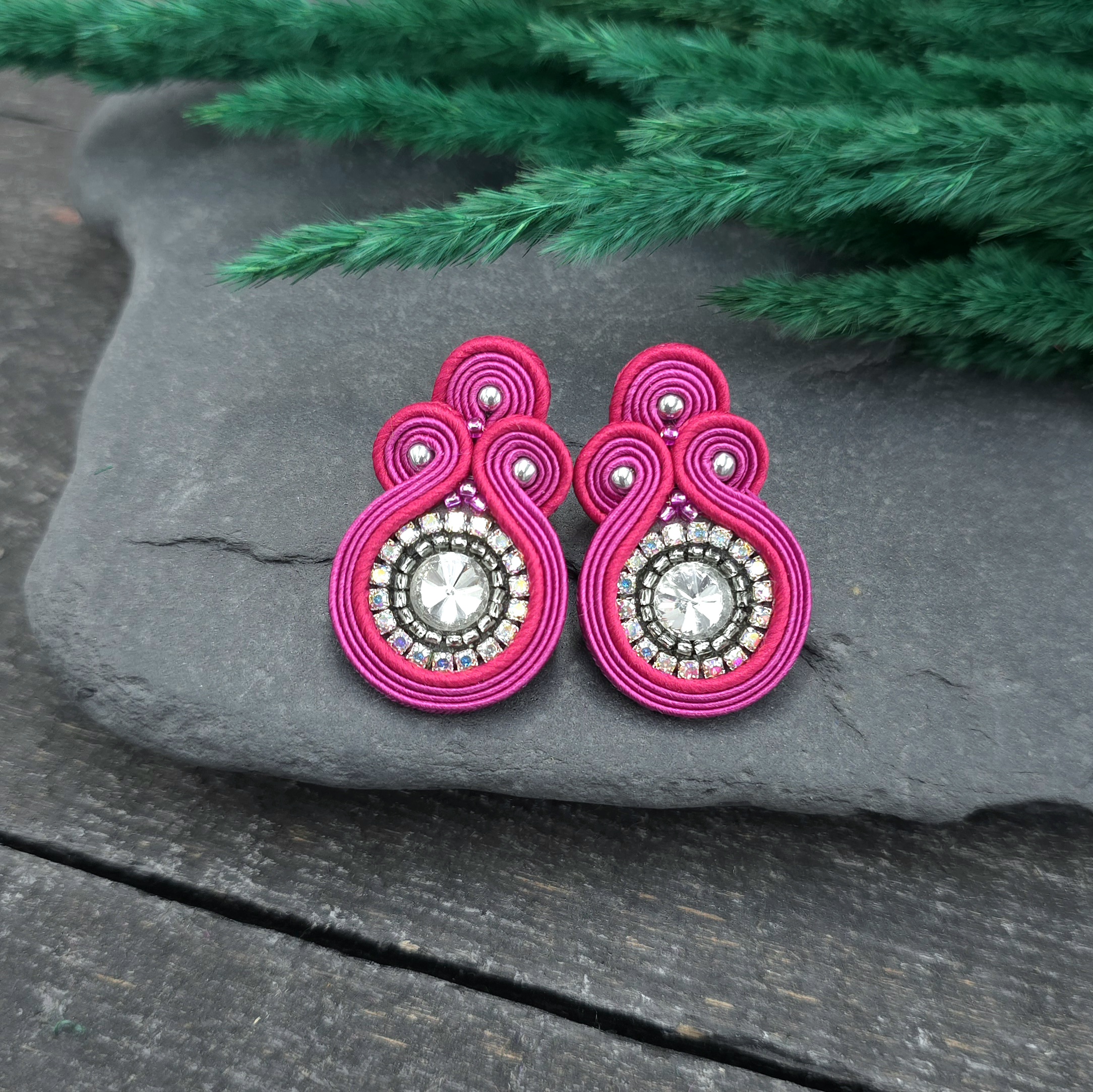 Kolczyki sutasz sztyfty małe srebrno różowe z kryształkami „Gracia”