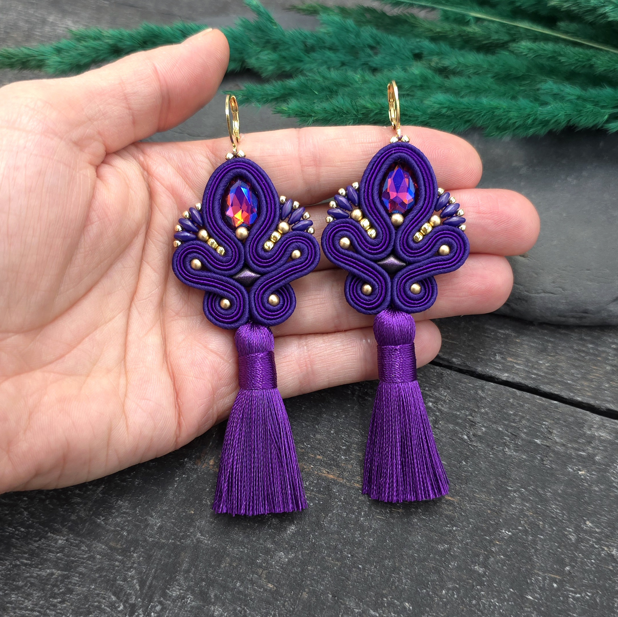 Kolczyki sutasz z chwostami fioletowe długie eleganckie wieczorowe „Cosima”