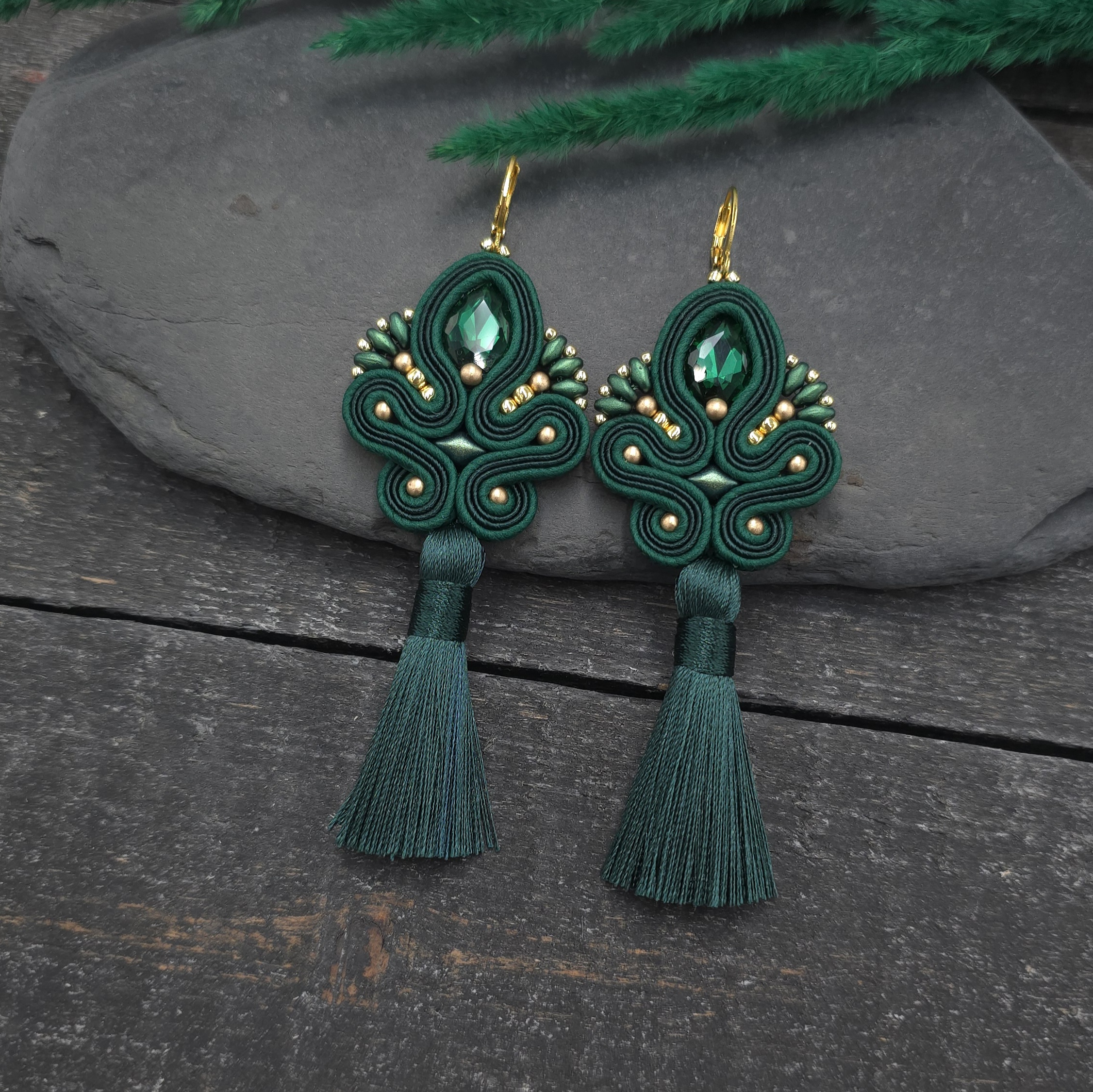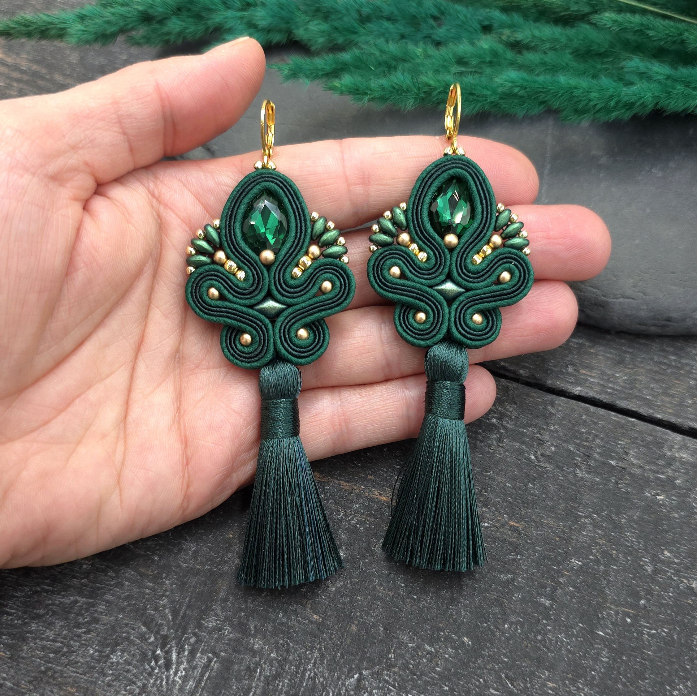 Kolczyki sutasz z chwostami zielone długie eleganckie wieczorowe „Cosima”