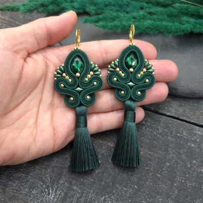 Napisz pierwszą opinię o „Kolczyki sutasz z chwostami zielone długie eleganckie wieczorowe „Cosima””