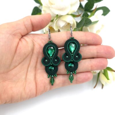 Kolczyki sutasz z kryształkami, w niewielkim rozmiarze, zakończone łezką i koralikami.