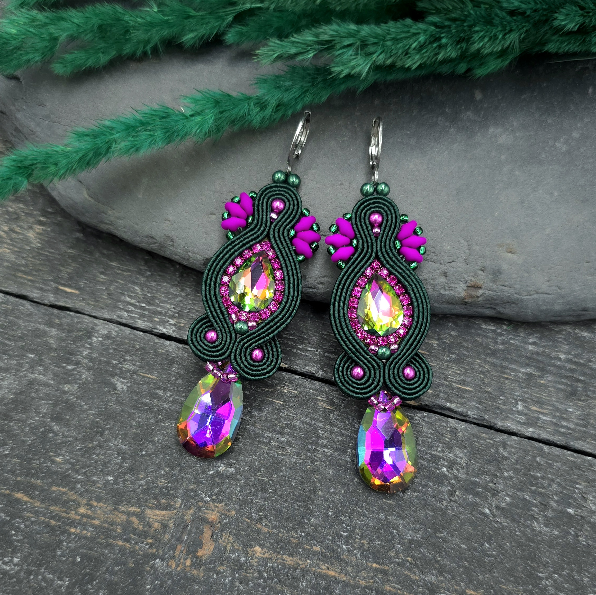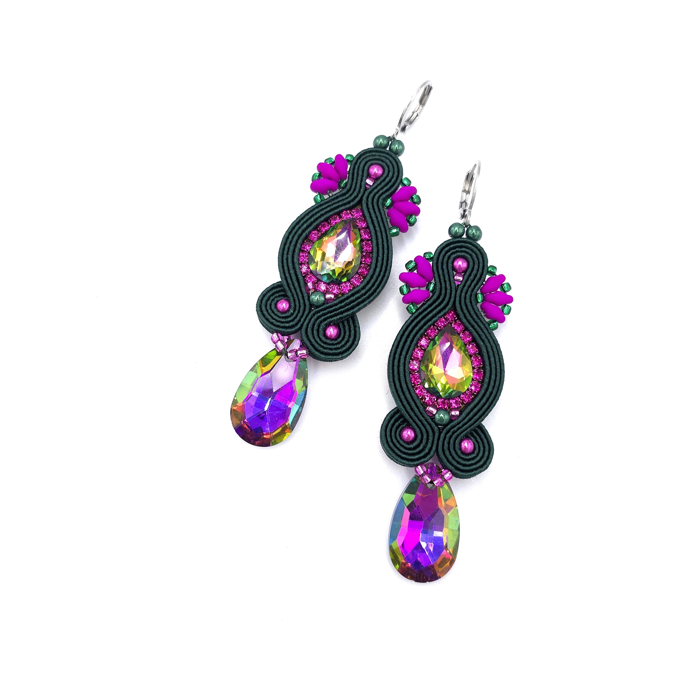 Efektowne kolczyki sutasz w odcieniach zieleni i różu to propozycja dla kobiet, które kochają biżuterię pełną blasku i wyrazistego charakteru.