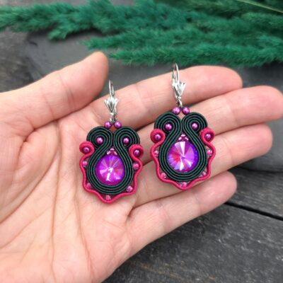 Delikatne kolczyki sutaszowe w formie kwiatów, które przyciągają spojrzenia swoją kolorową, radosną kompozycją.