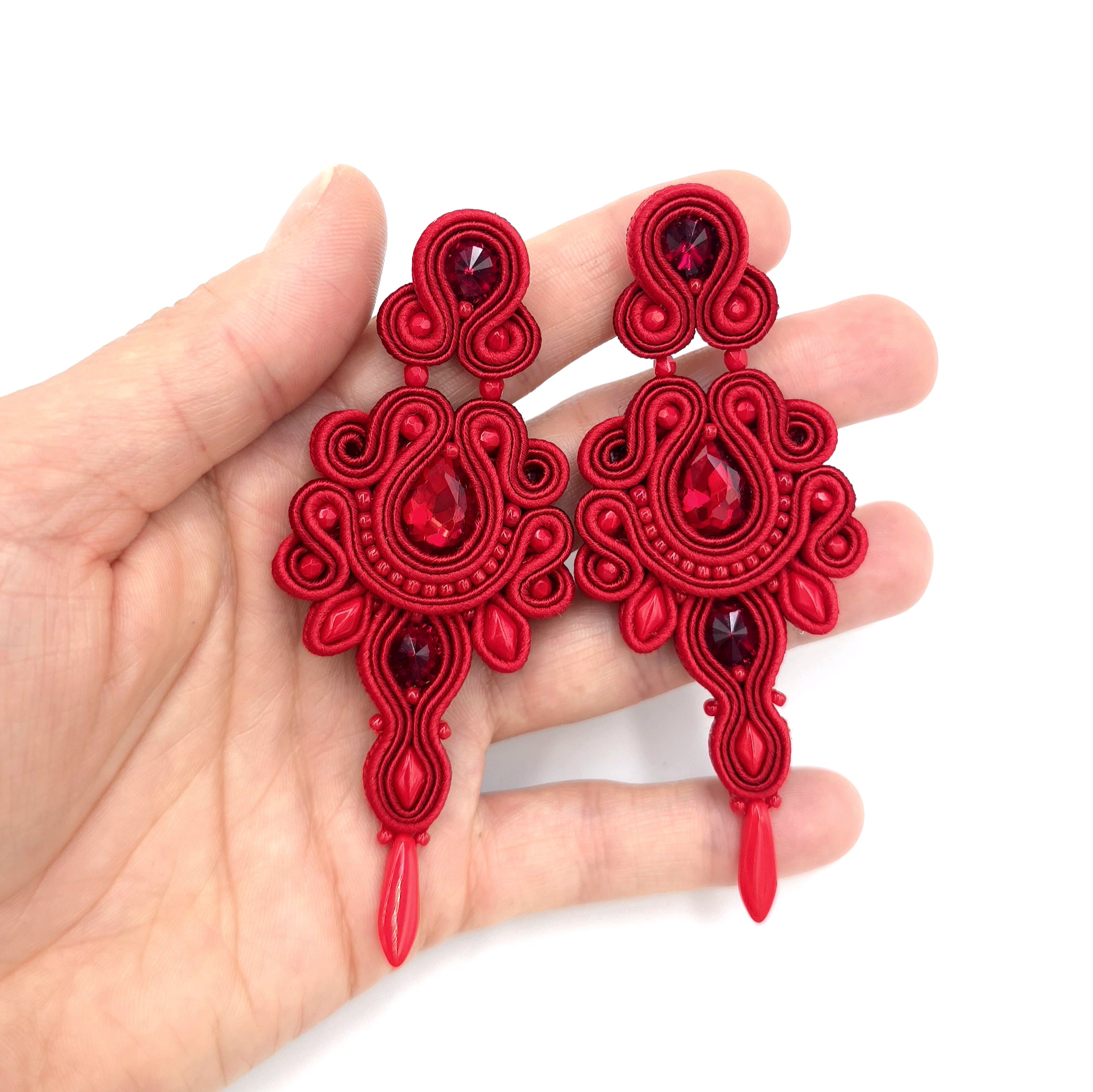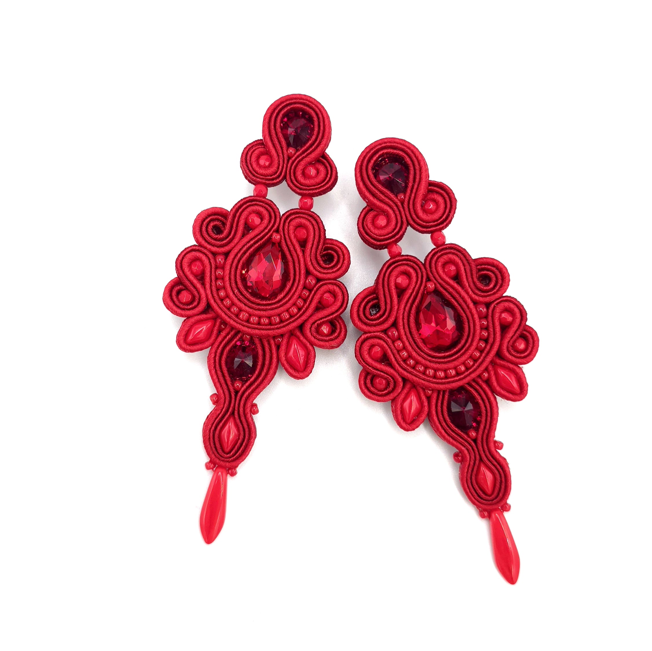 „Magnolia” wieczorowe czerwone eleganckie kolczyki sutasz z kryształkami