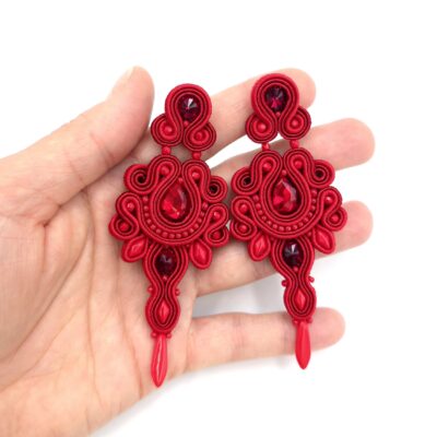 Napisz pierwszą opinię o „„Magnolia” wieczorowe czerwone eleganckie kolczyki sutasz z kryształkami”