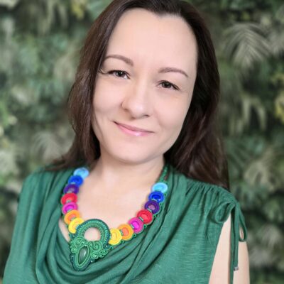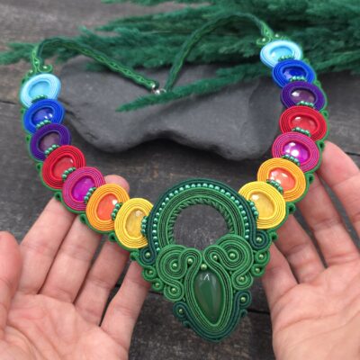 Wyjątkowy, ręcznie wykonany naszyjnik w intensywnych, tęczowych kolorach, który przyciąga spojrzenia i dodaje energii każdej stylizacji.