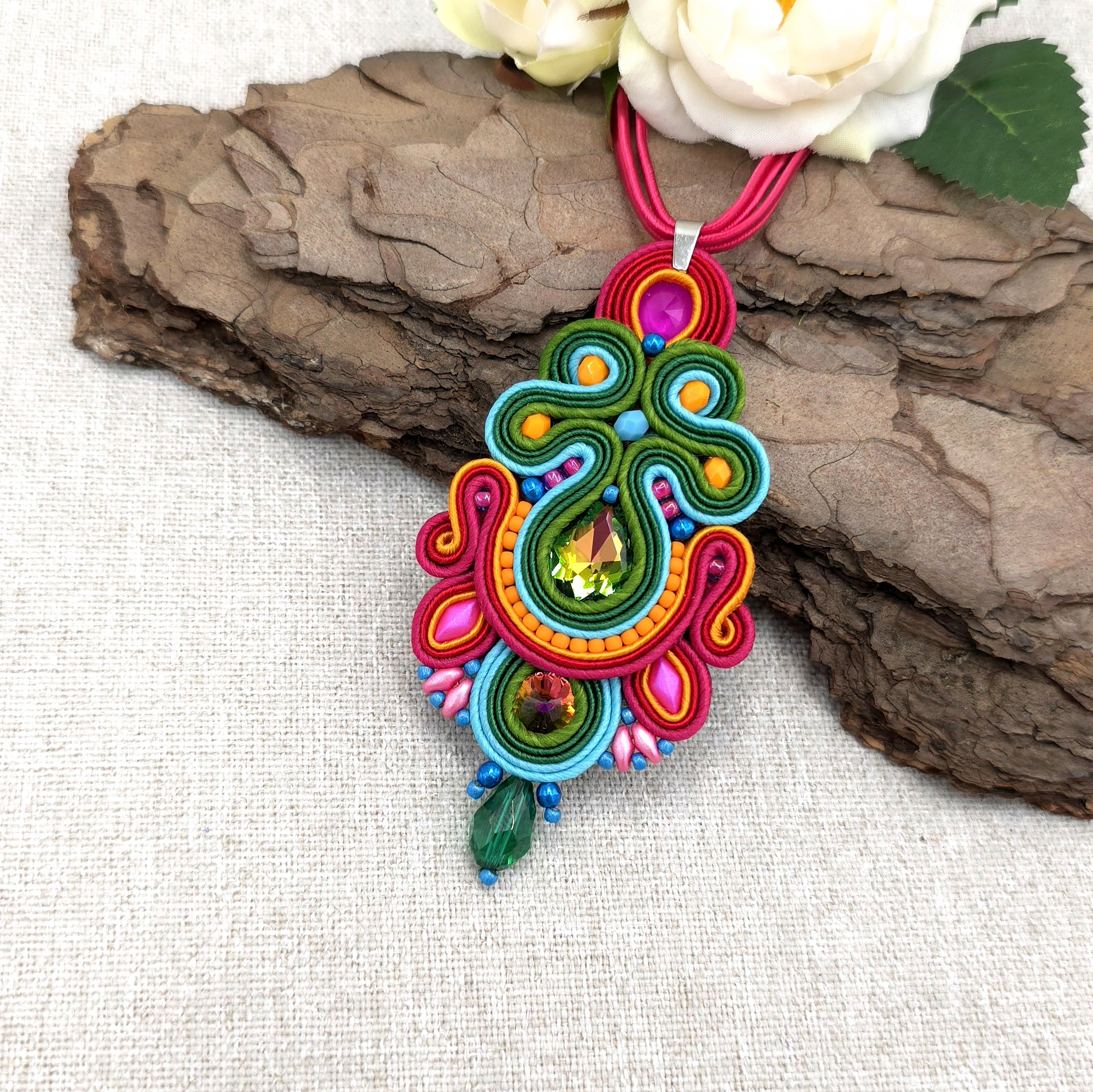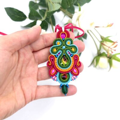 Bogaty, choć niewielki wisiorek sutasz, wykonany w stylu Bollywood.