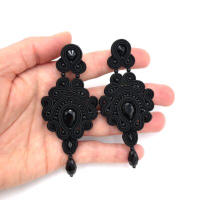 Bardzo eleganckie, długie kolczyki sutasz w kolorze czarnym.