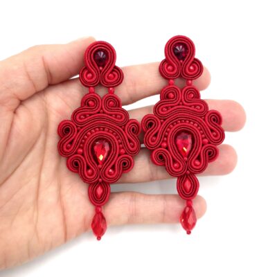 Bardzo eleganckie, długie kolczyki sutasz w kolorze głębokiej czerwieni.