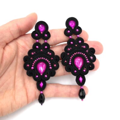Bardzo eleganckie, długie kolczyki sutasz w kolorze fuksjowo czarnym.