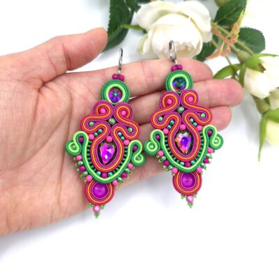 Unikatowe kolczyki sutasz, o pięknej, rozbudowanej formie, pełne barw.