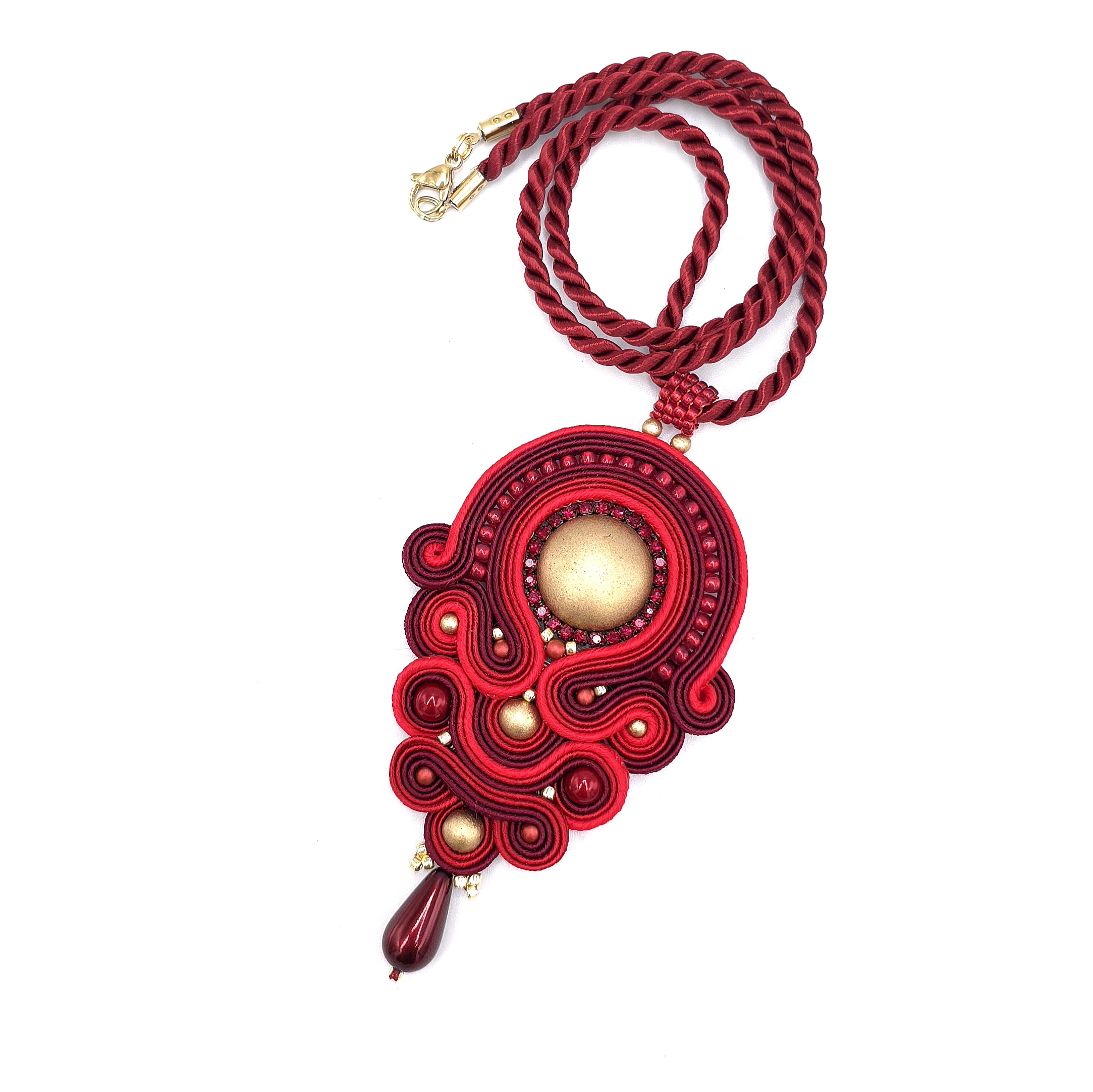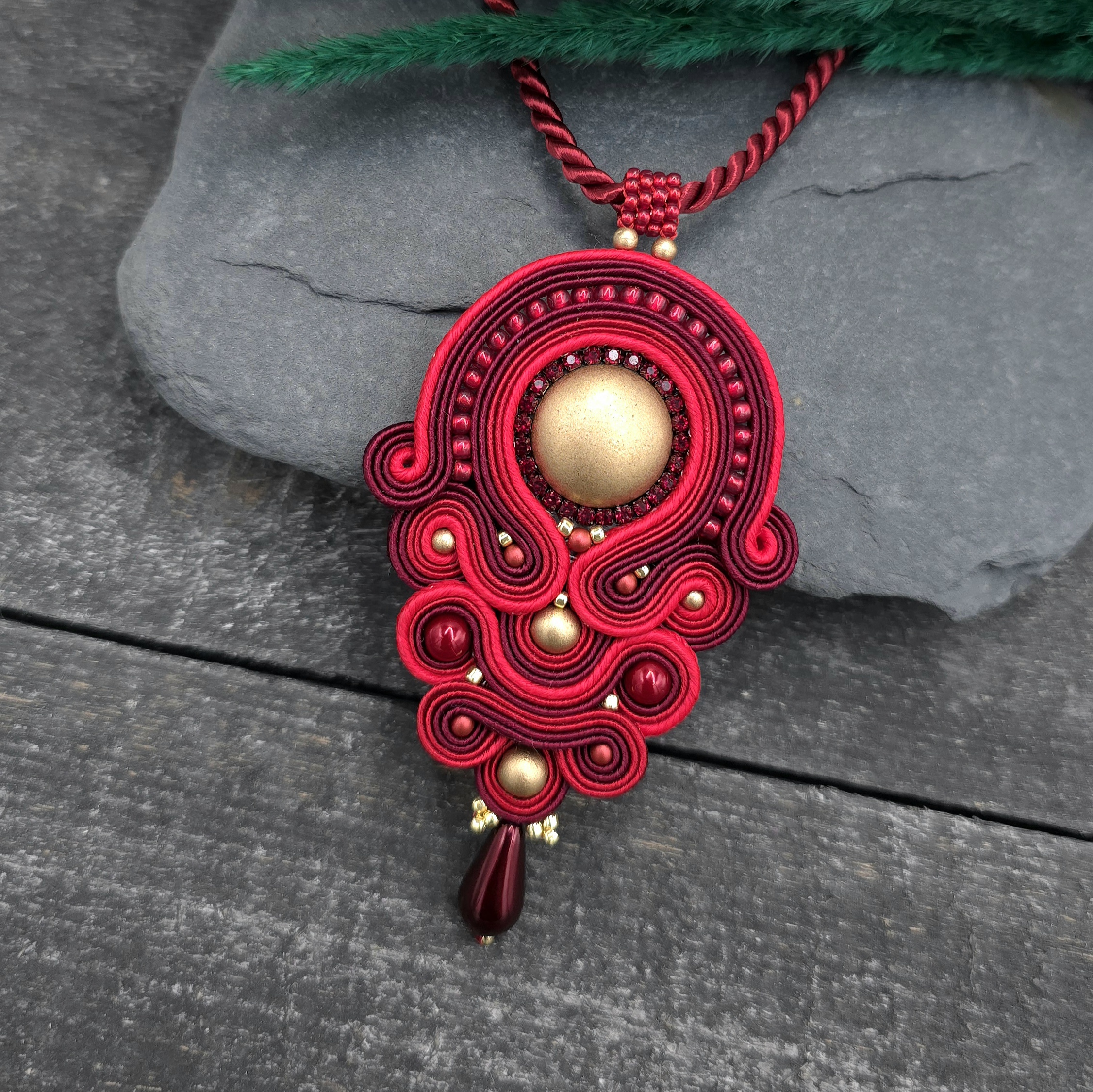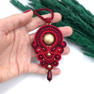 Niezwykle elegancki wisior z sutaszu utrzymany w czerwono złotej kolorystyce.