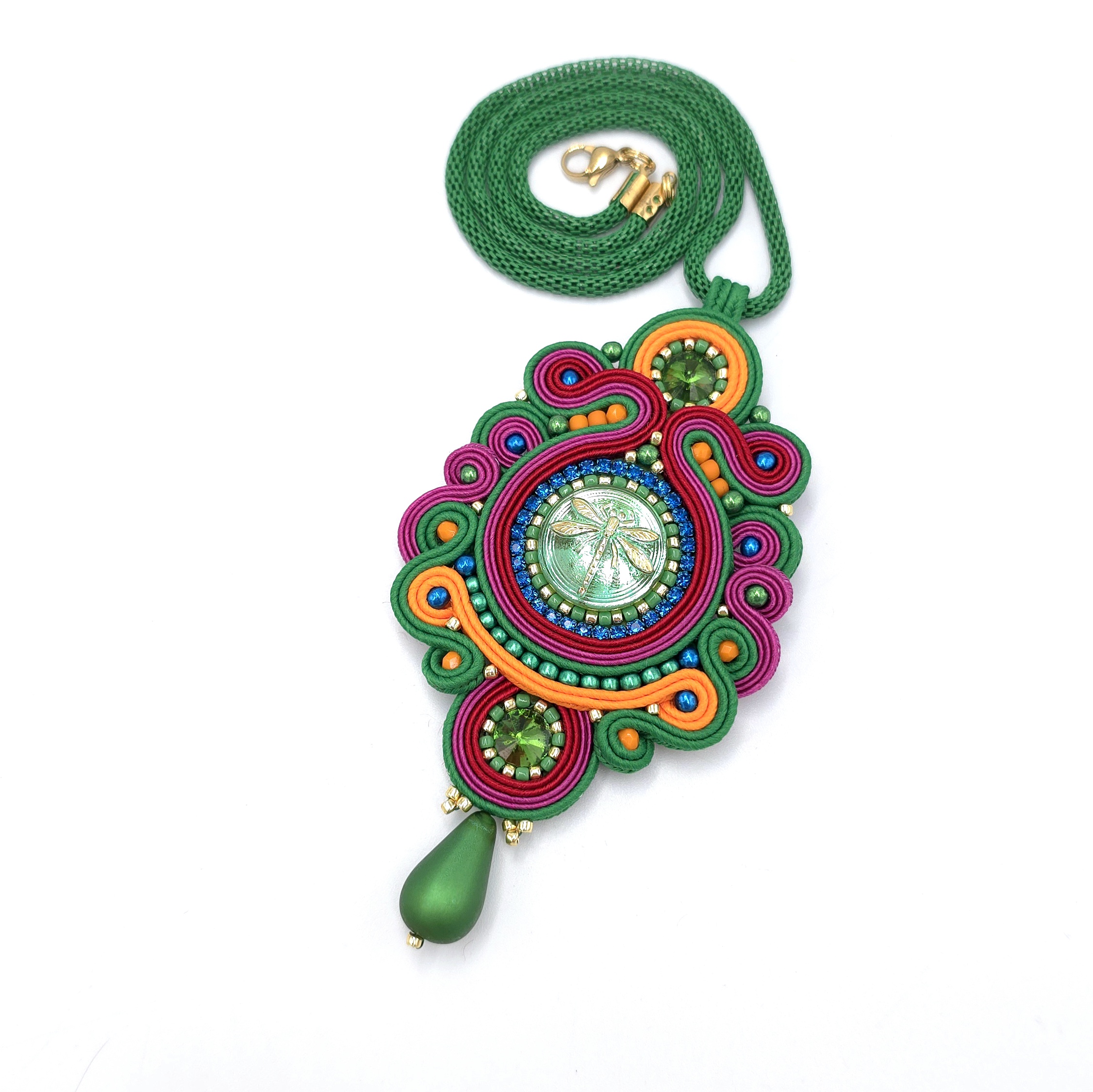 Wisiorek sutasz handmade kolorowy barwny naszyjnik „Florina” z ważką